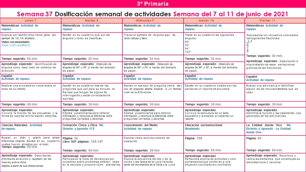 DOSIFICACIÓN DE ACTIVIDADES SAMANA 37 1º- 2º Y 3º DE PRIMARIA (3) ACRBIO · 6 junio, 2021 · Deja un comentario
