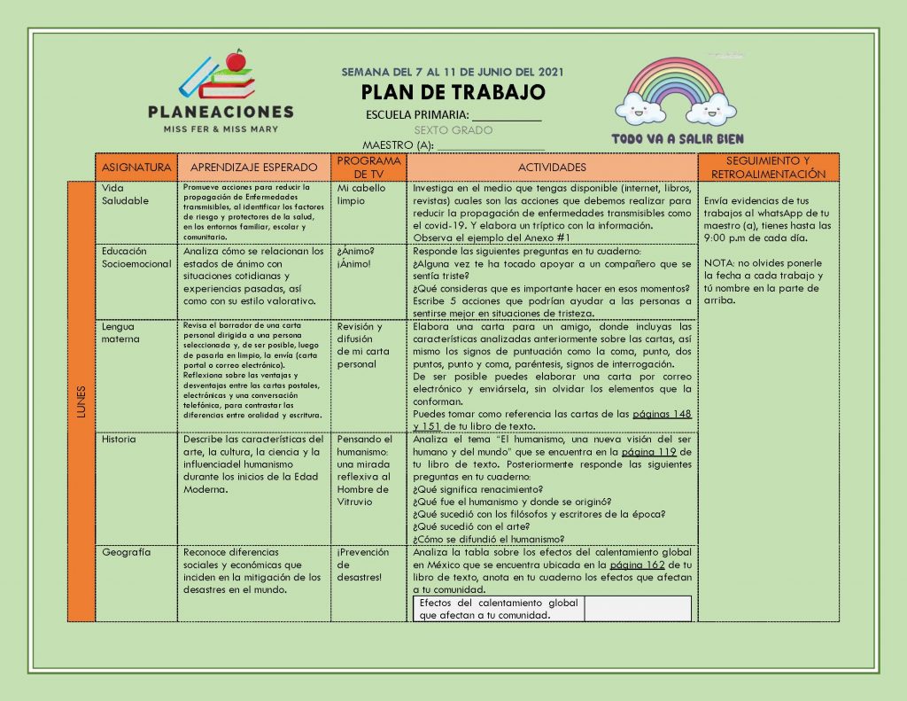 EDITABLE PLAN DE TRABAJO SEMANA 37 del 07 AL 11 DE JUNIO GRADOS 4º,5º Y 6º TODAS LAS MATERIAS WORD