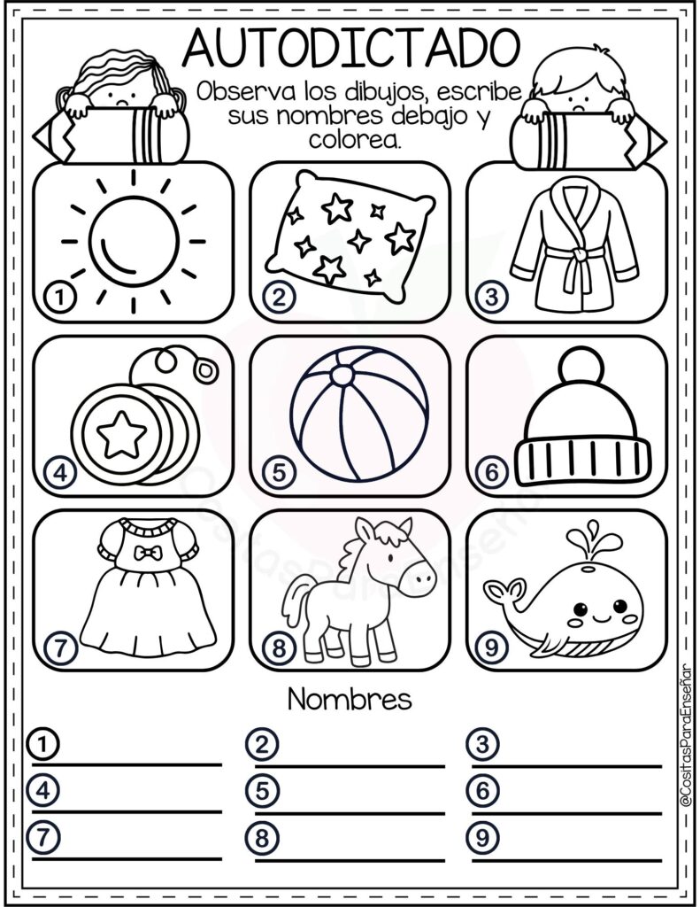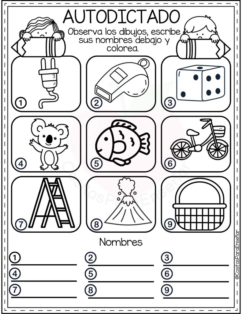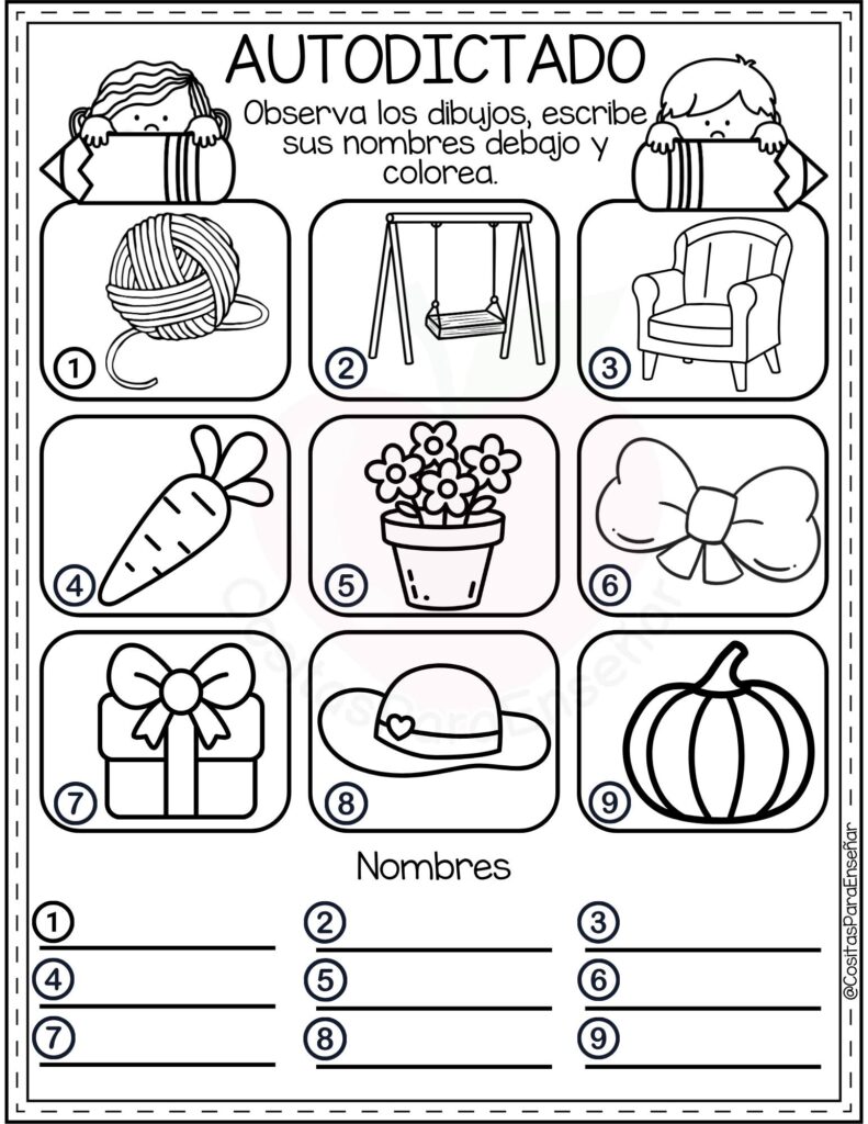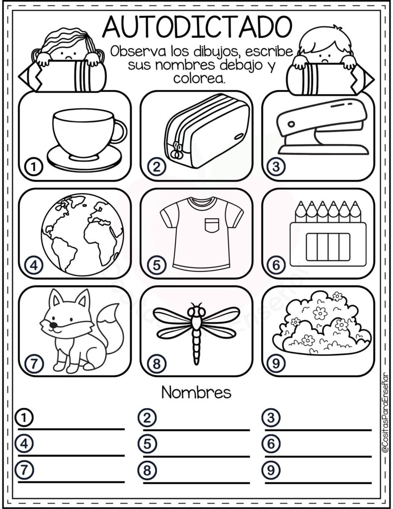Los Ejercicios de autodictado para escribir y colorear: fichas de primaria en PDF son un recurso ideal para reforzar la ortografía y la escritura de manera autónoma y motivadora. A través de imágenes atractivas y palabras clave, el alumnado observa, memoriza y escribe correctamente, favoreciendo la atención y la discriminación visual.