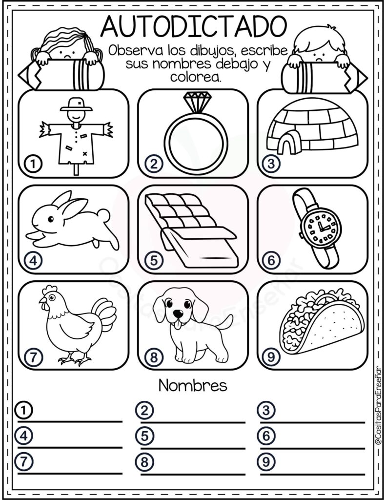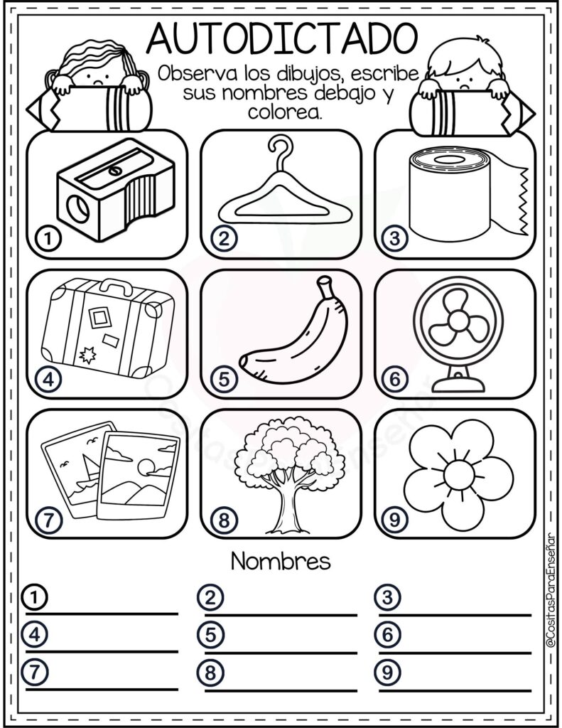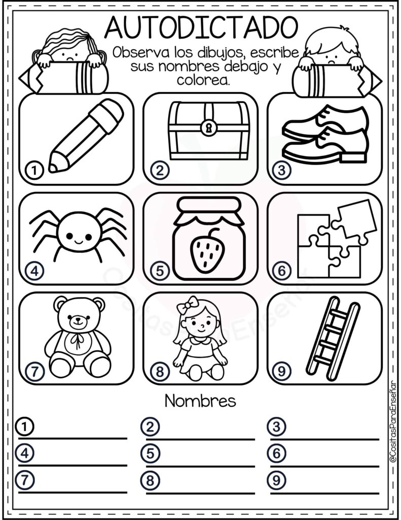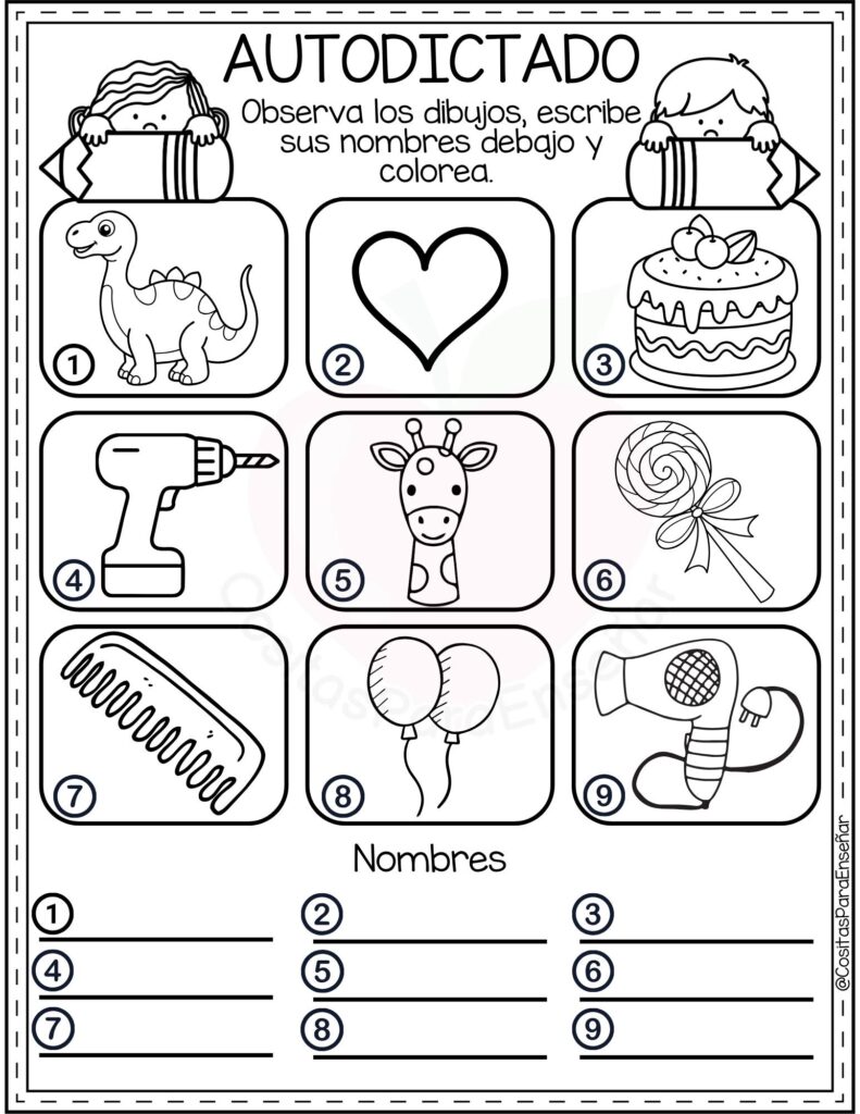 Los Ejercicios de autodictado para escribir y colorear: fichas de primaria en PDF son un recurso ideal para reforzar la ortografía y la escritura de manera autónoma y motivadora. A través de imágenes atractivas y palabras clave, el alumnado observa, memoriza y escribe correctamente, favoreciendo la atención y la discriminación visual.