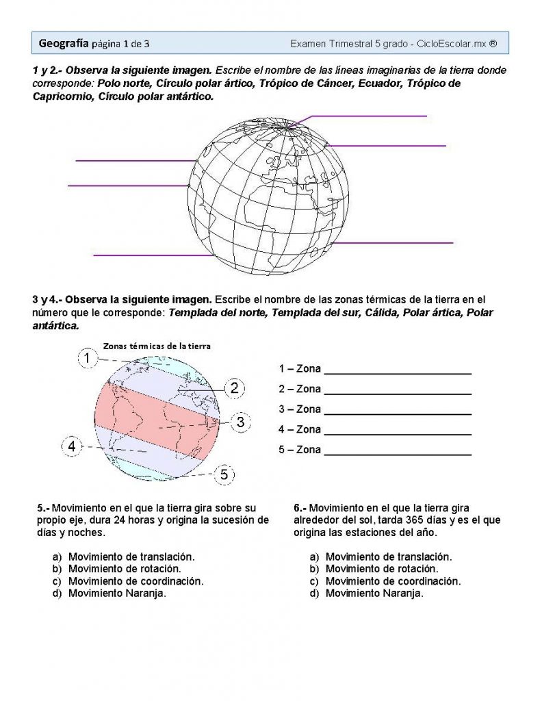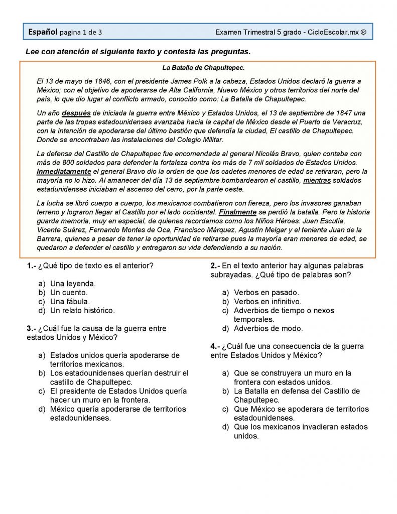 EXAMEN TRIMESTRE BLOQUE I 5° PRIMARIA CICLO ESCOLAR 2022-2023