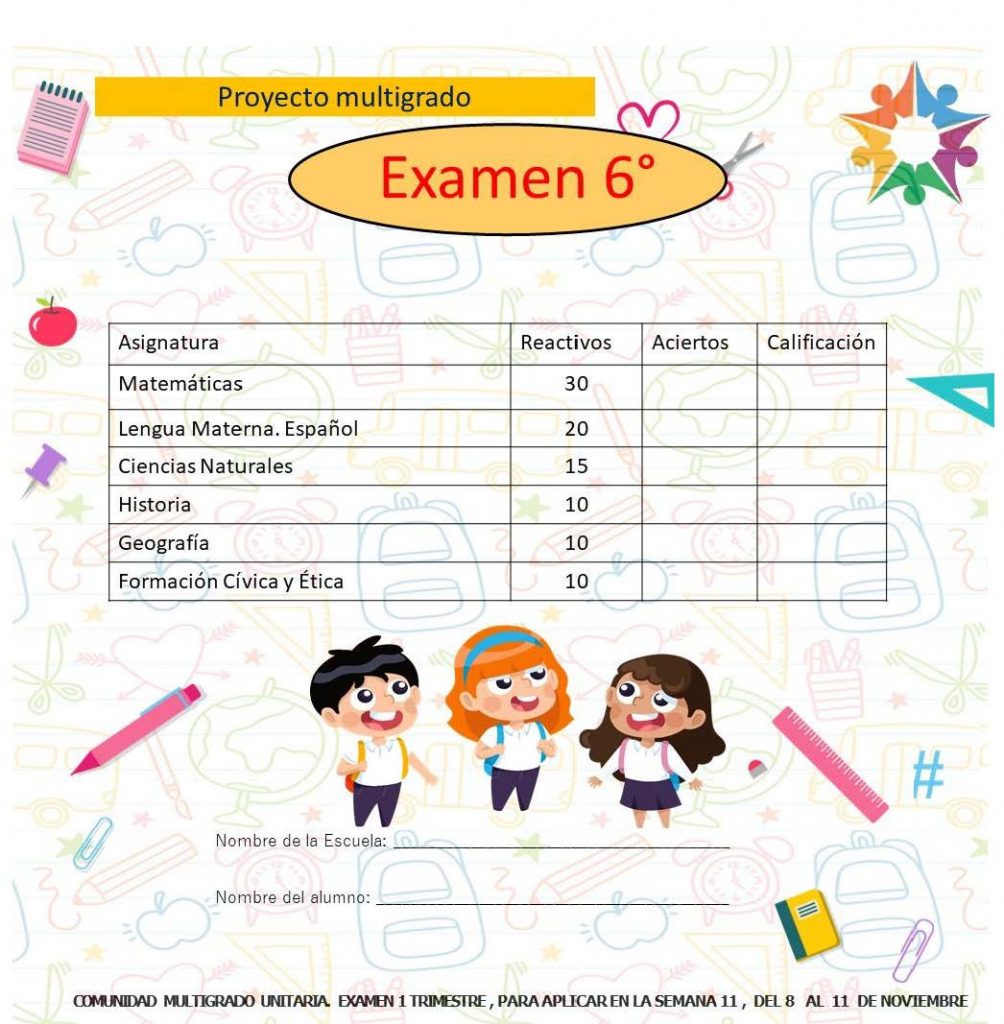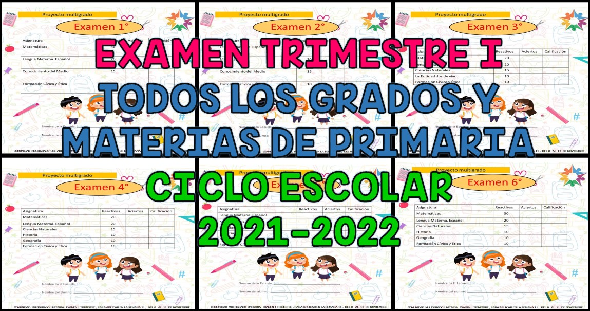 EXÁMEN TRIMESTRE I TODOS LOS GRADOS Y MATERIAS DE PRIMARIA CICLO ESCOLAR 2021-2022