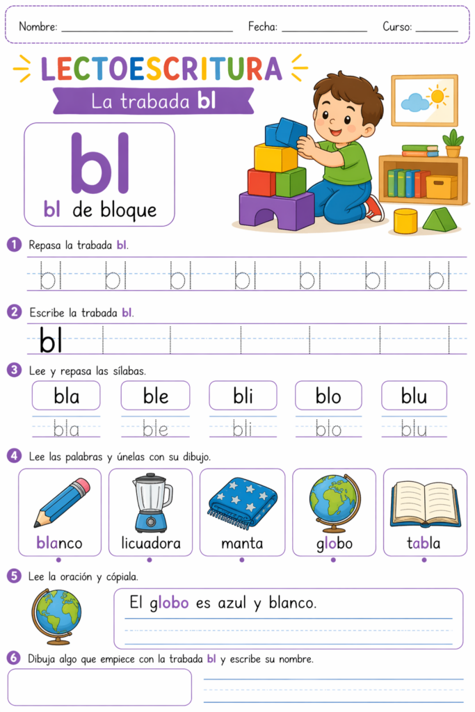 Las fichas con sílabas trabadas son un recurso ideal para trabajar las dificultades más comunes en el aprendizaje de la lectura y escritura. A través de estas actividades, el alumnado refuerza la lectoescritura de forma progresiva.