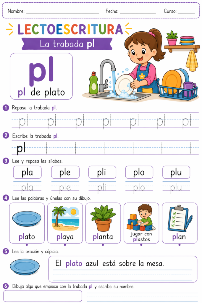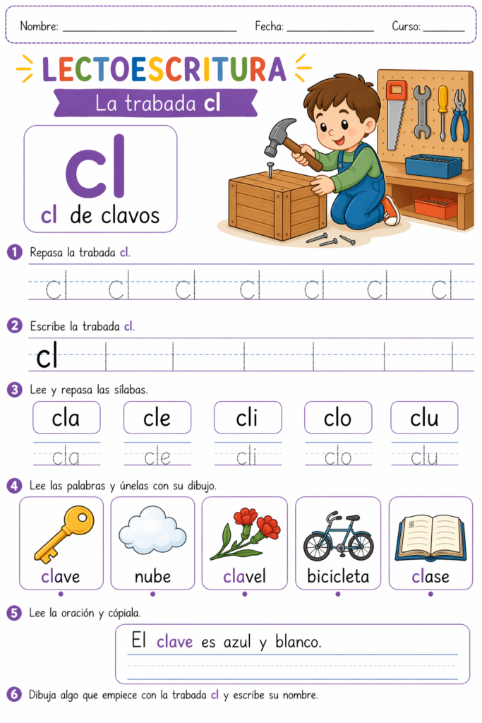Este tipo de material permite practicar combinaciones como bra, cla, flo o tri, favoreciendo la correcta pronunciación y comprensión de palabras. Además, forma parte de los mejores recursos educativos para el área de lengua.