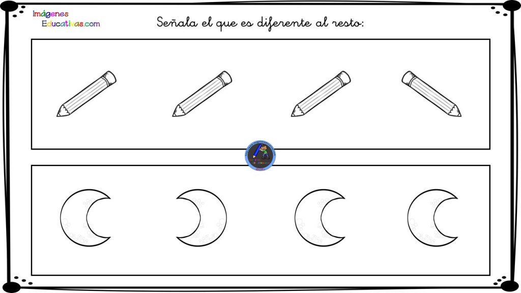 La siguiente actividad no sólo estimula la atención sostenida y selectiva, sino que trabaja otros aspectos no menos importantes en la Educación Infantil y Primaria: la discriminación visual, la percepción de diferencias y la coordinación visiomotora al tener que identificar y señalar el dibujo que es diferente al resto.