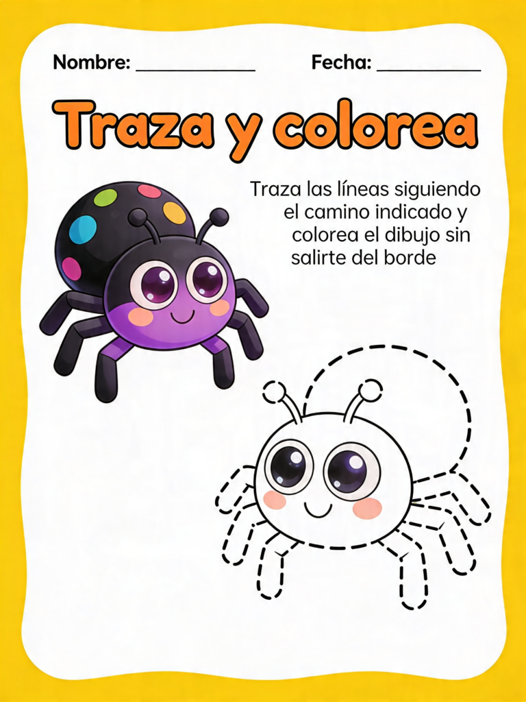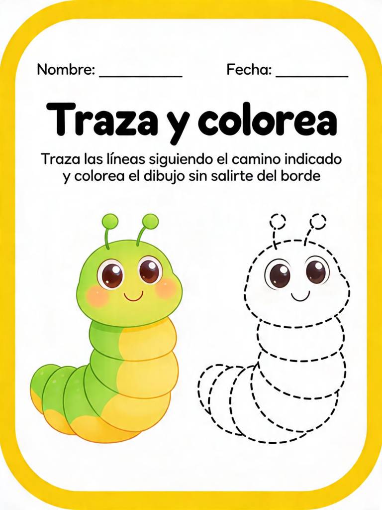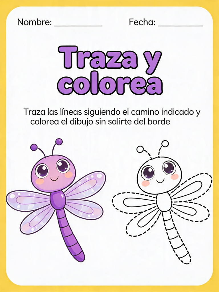 Las actividades combinan el trazo con el coloreado, favoreciendo la concentración, la creatividad y el desarrollo de la motricidad fina. Son especialmente útiles para iniciar el aprendizaje de la preescritura de manera motivadora.