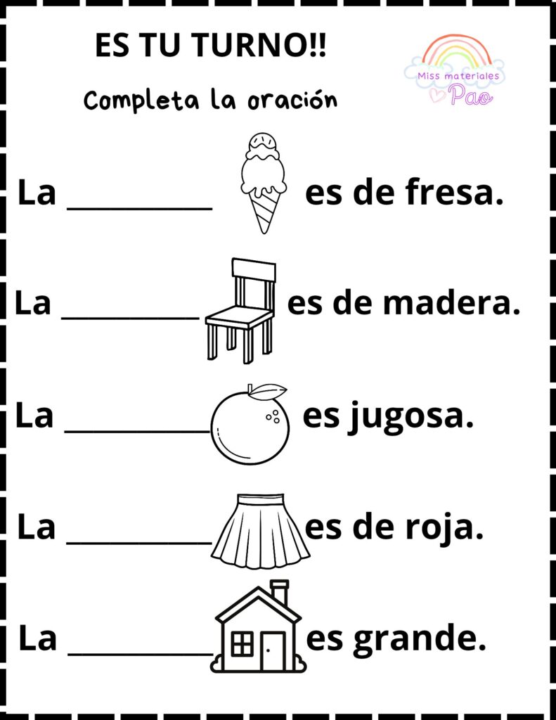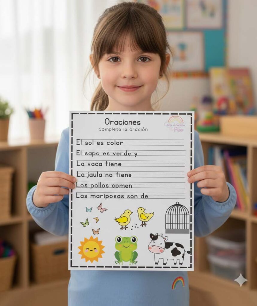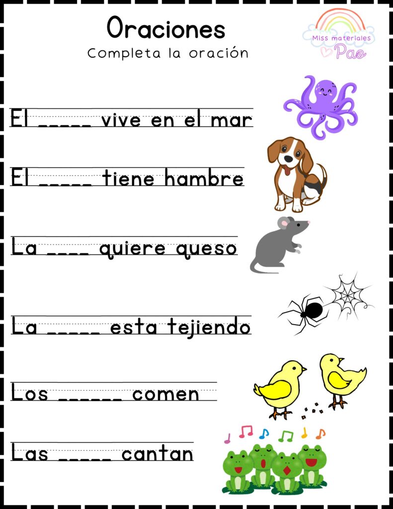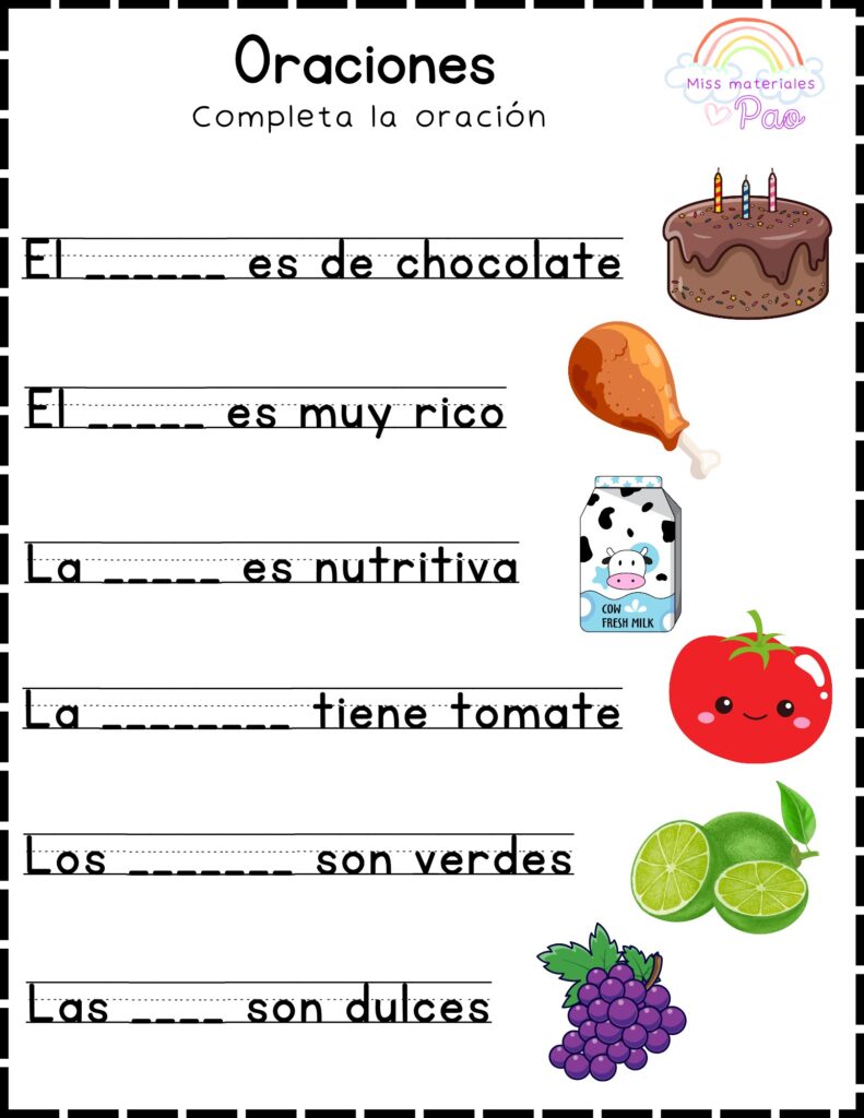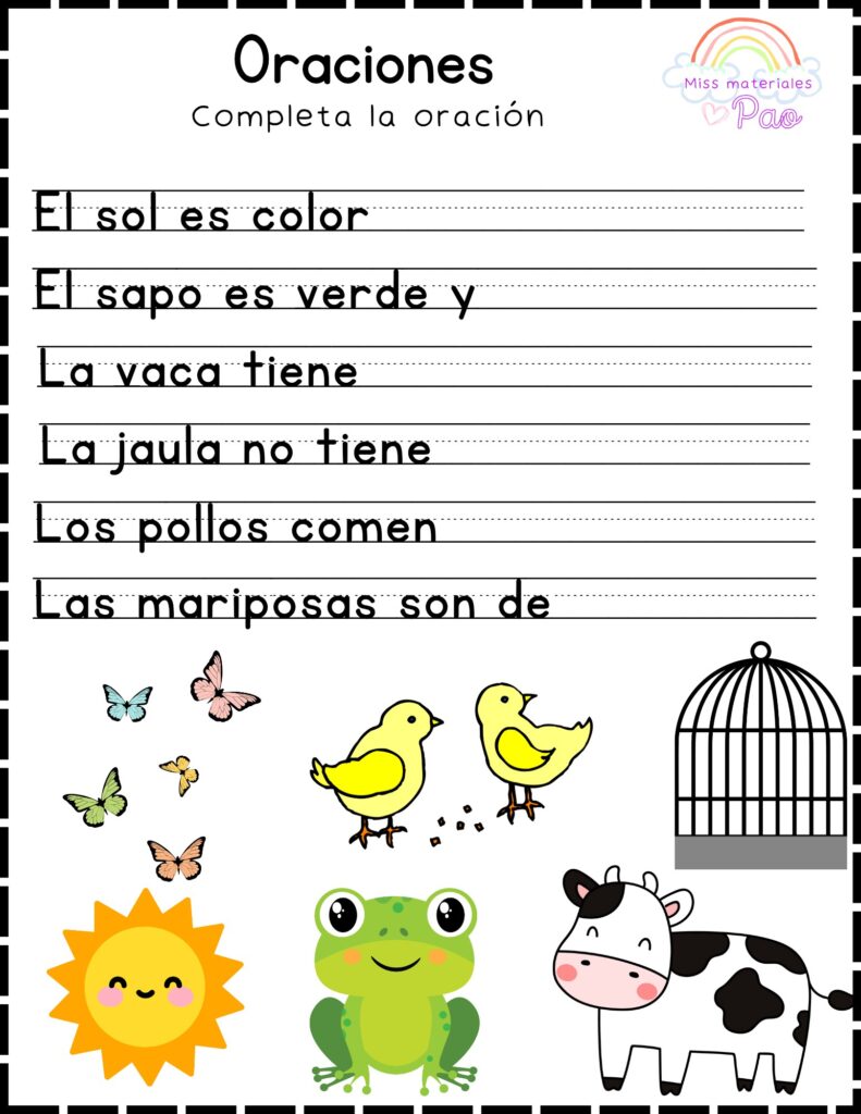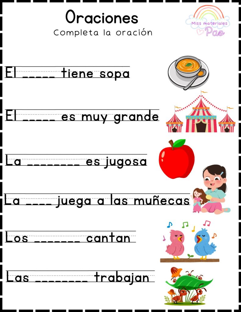 📄 Fichas con oraciones claras y adaptadas al nivel del alumnado.