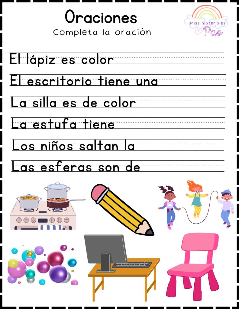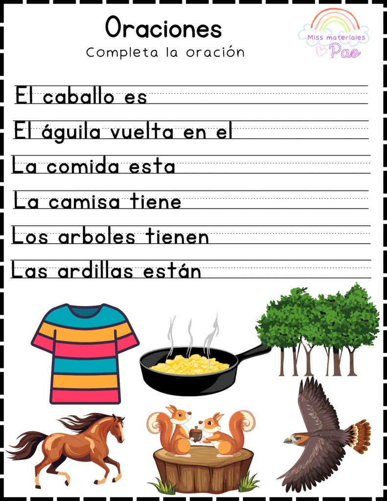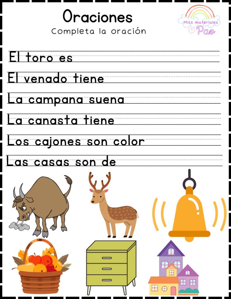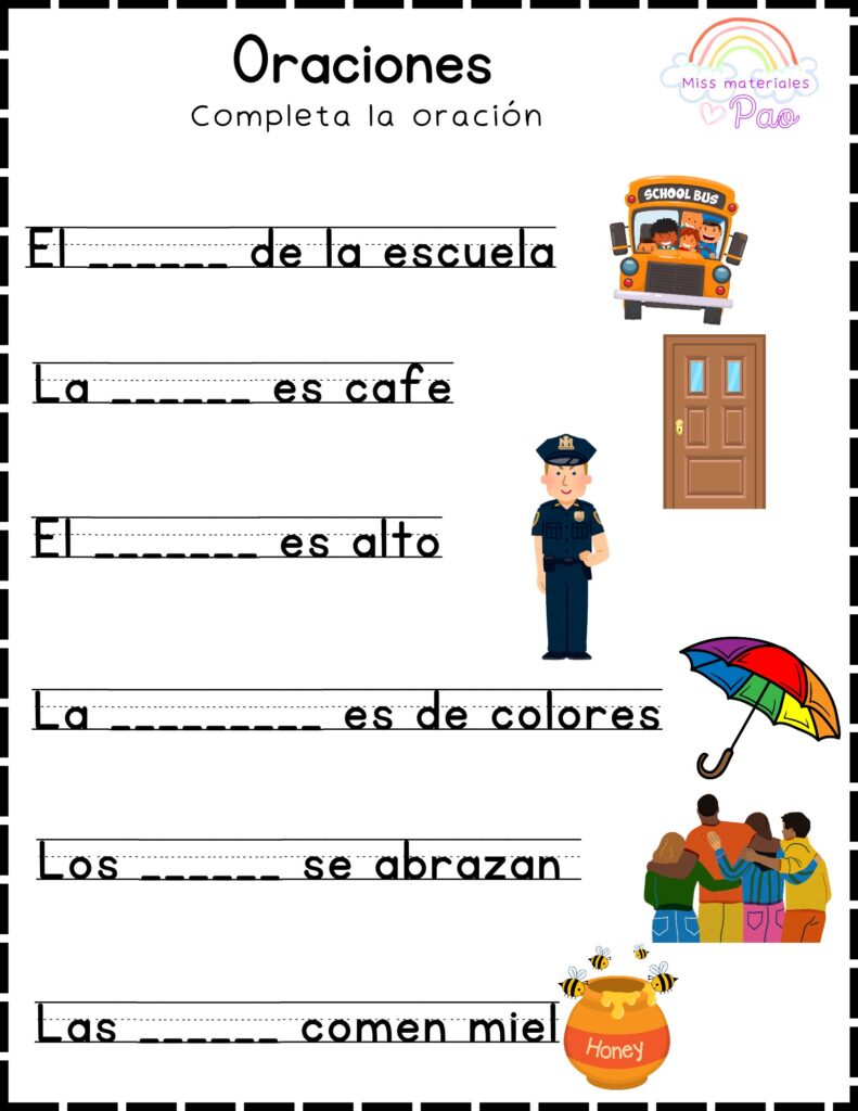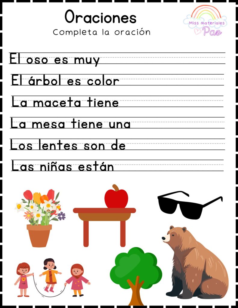 📄 Fichas con oraciones claras y adaptadas al nivel del alumnado.