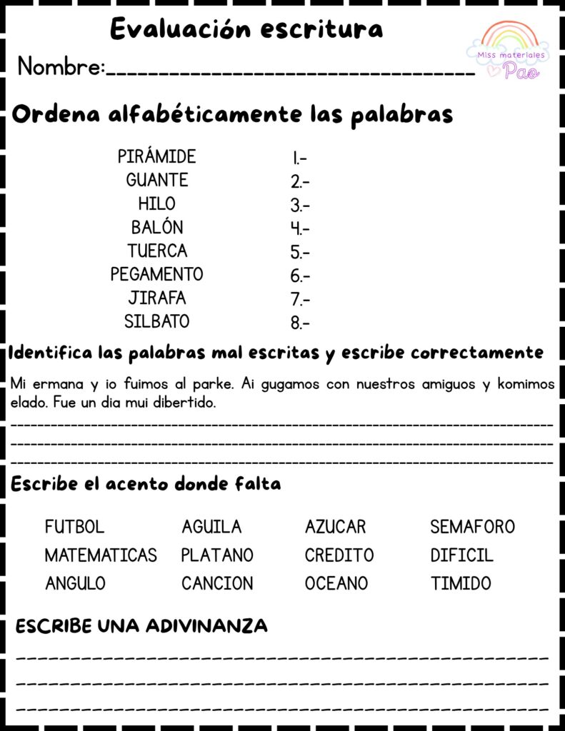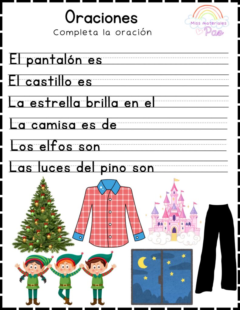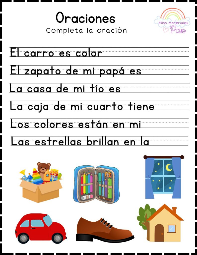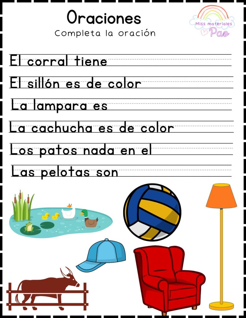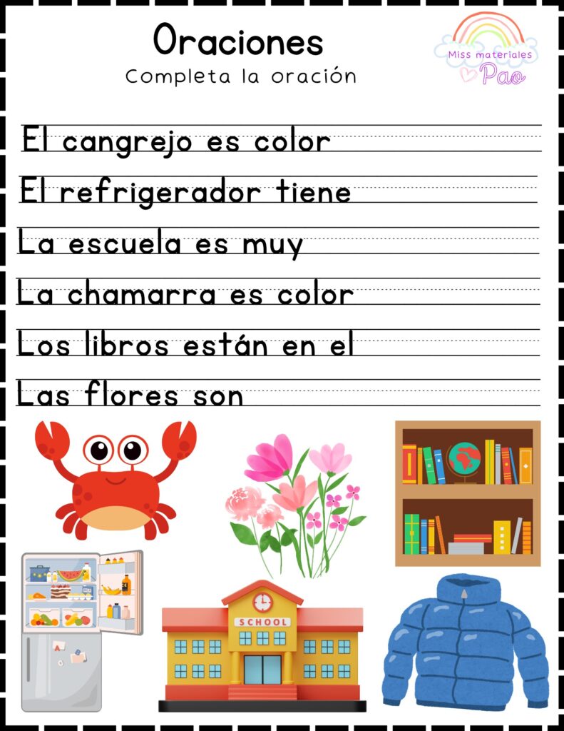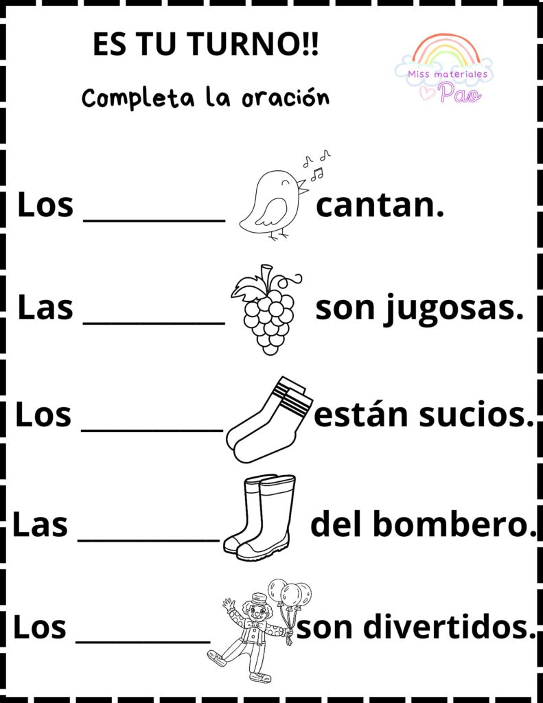 📄 Fichas con oraciones claras y adaptadas al nivel del alumnado.