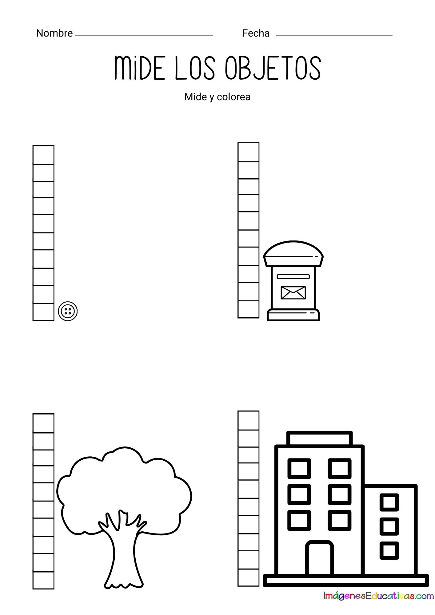 Usted está aquí: Inicio / Fichas matemáticas de Infantil para medir objetos: Mide y colorea / ficha infantil medir (2)