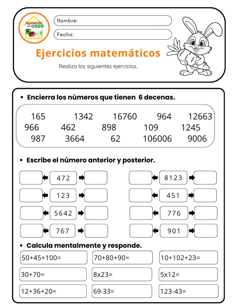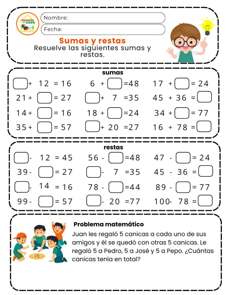 Este tipo de fichas está diseñado para combinar ejercicios variados que ayudan a consolidar los conocimientos adquiridos en el aula. Los estudiantes pueden practicar sumas, restas, multiplicaciones, divisiones, problemas matemáticos o actividades de lógica, favoreciendo así un aprendizaje completo. Las actividades imprimibles de matemáticas son especialmente útiles para reforzar contenidos de forma estructurada.