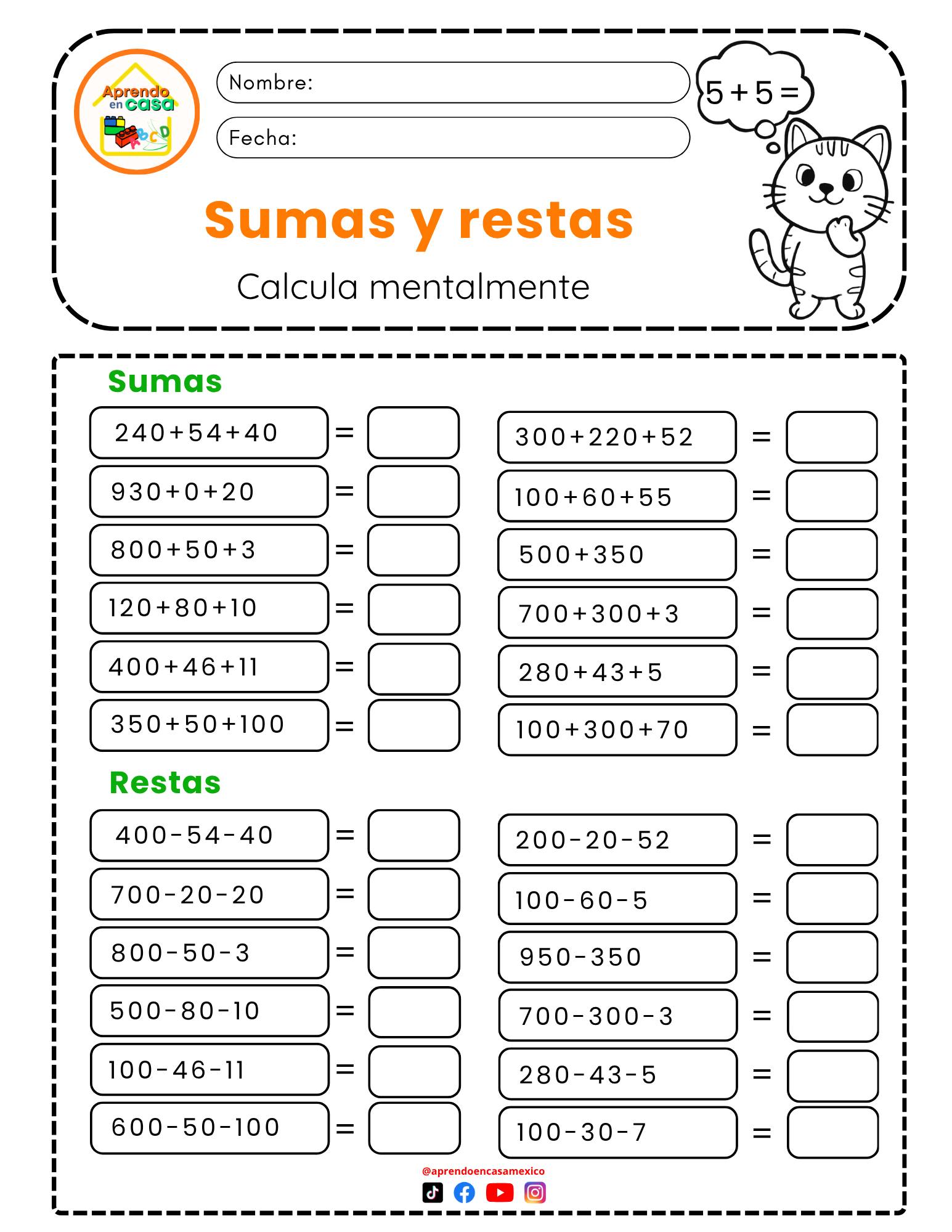 • CUADERNILLO SUMAS Y RESTAS 2º GRADO