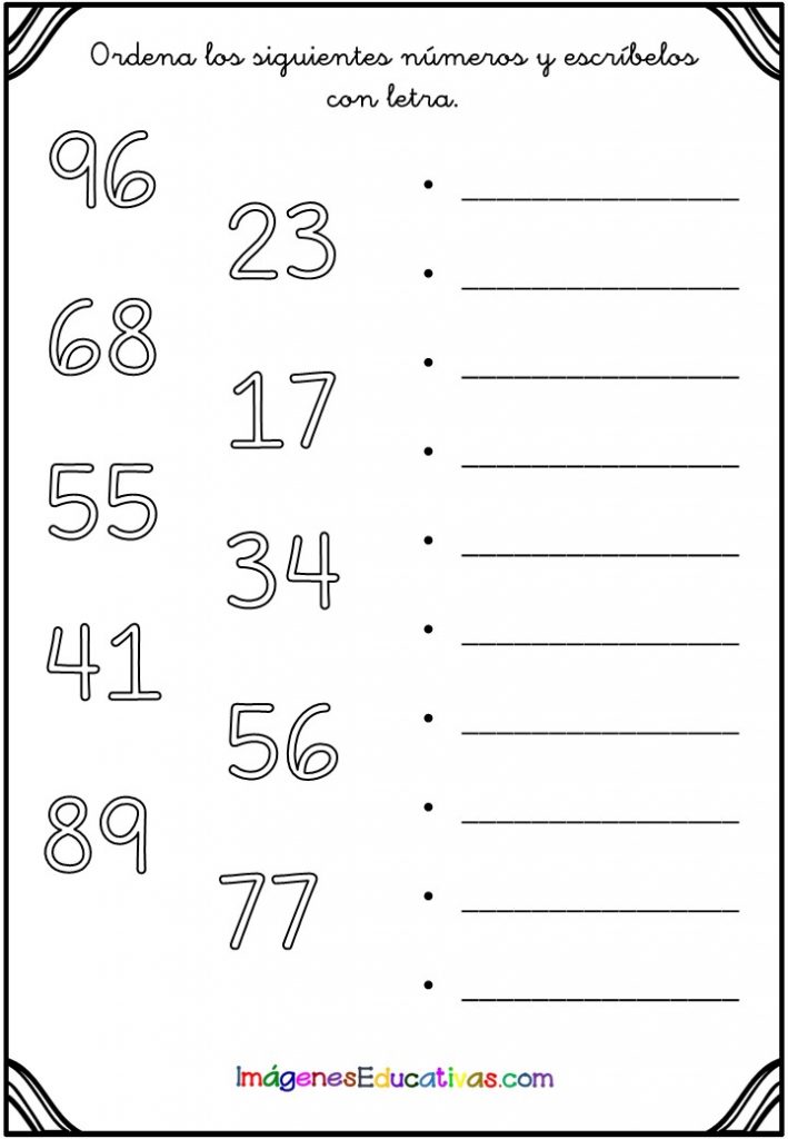FICHAS PARA ORDENAR Y ESCRIBIR NÚMEROS María · 19 marzo, 2023 · Deja un comentario Ordenar correctamente los números y sabes escribirlos con letras es un aprendizaje básico matemáticos de los primeros cursos de Primaria. Y para poner en práctica estos ejercicios os comparto las siguientes fichas. Escribe tu correo electrónico… Suscribirse