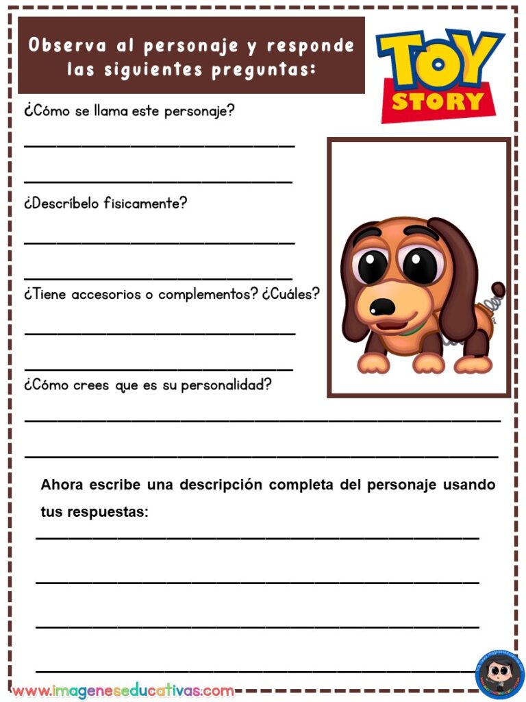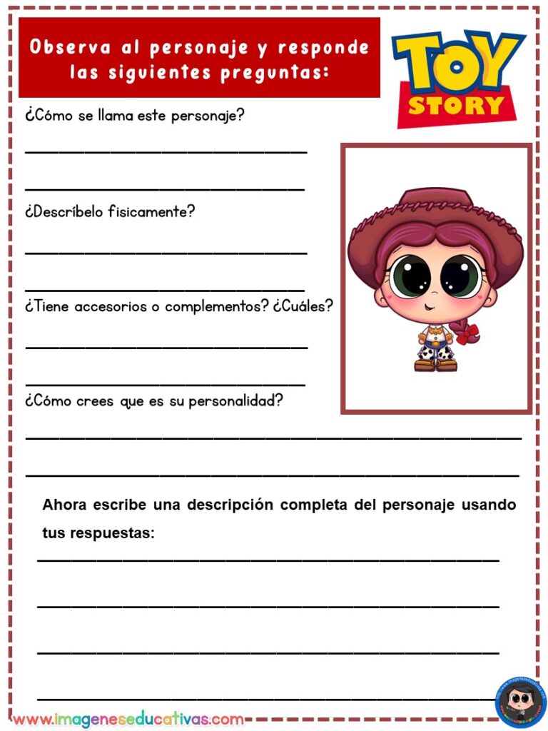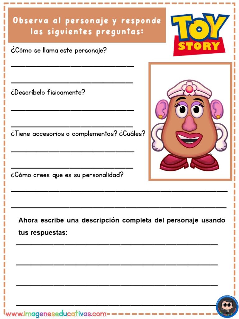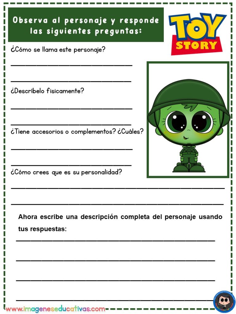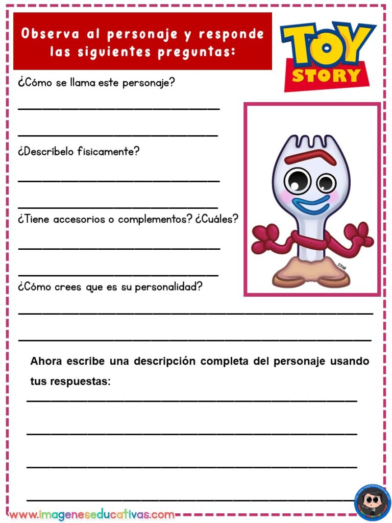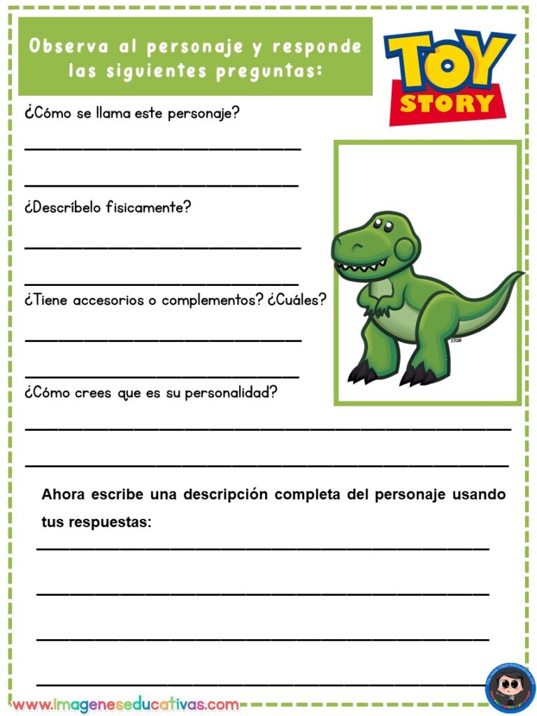 - Fichas para realizar descripciones de los personajes TOY STORY