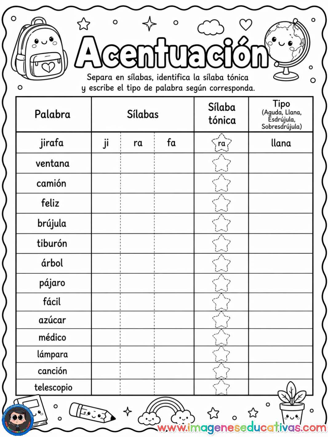 Usted está aquí: Inicio / Fichas para trabajar la acentuación de palabras / Fichas para trabajar la acentuación de palabras_Página_4