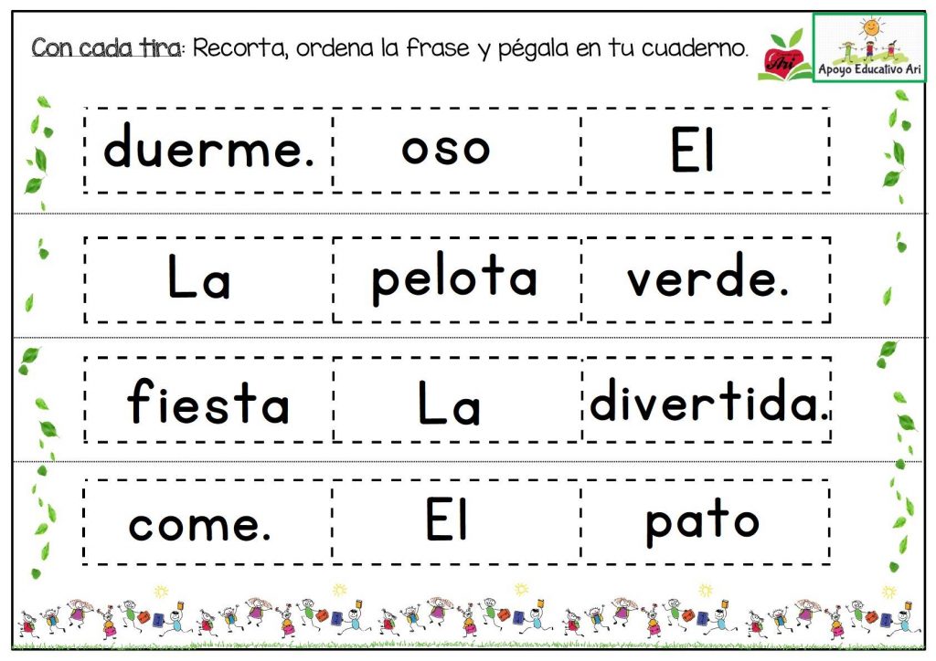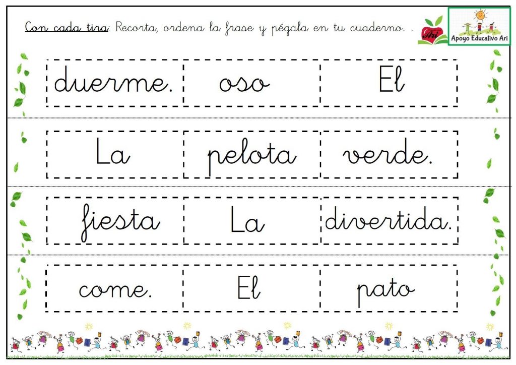 Frases cortas para recortar, ordenar y pegar en el cuaderno