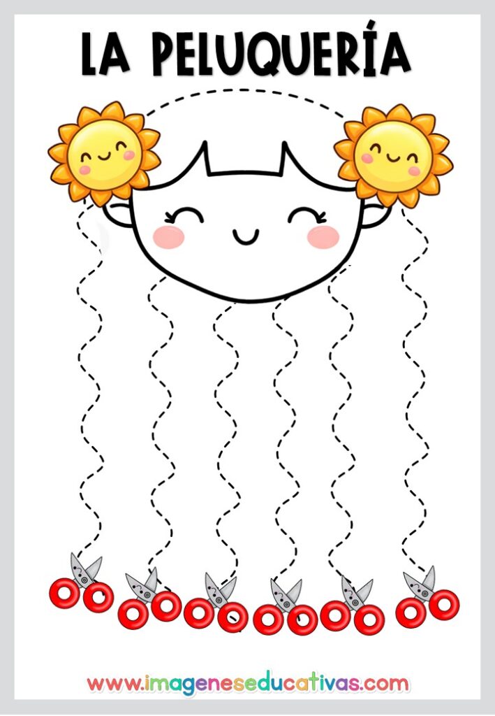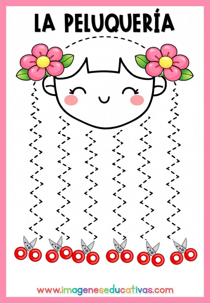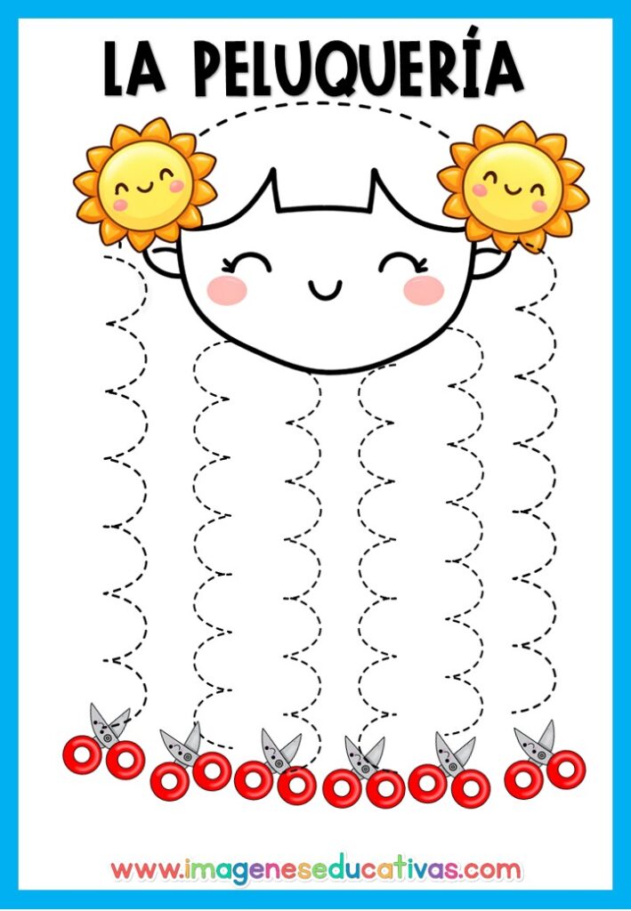 Las Fichas de Grafomotricidad y Neuroescritura · La Peluquería de Imágenes Educativas son un recurso lúdico y estimulante que permite trabajar la escritura, la atención y la coordinación a través de una temática cercana y divertida. Inspiradas en el mundo de la peluquería, estas actividades invitan a los niños y niñas a seguir trazos, patrones y recorridos mientras desarrollan habilidades cognitivas y motoras fundamentales.