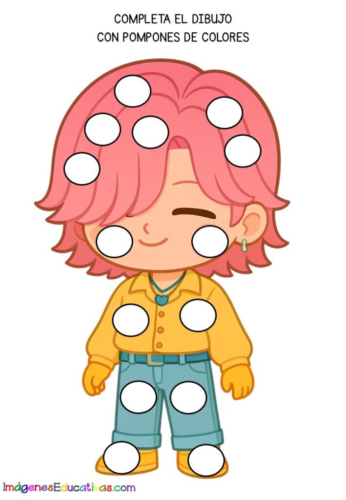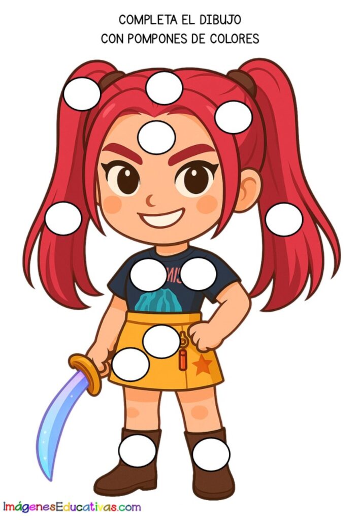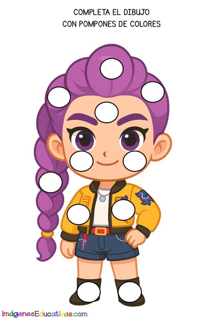 El aprendizaje en la etapa Infantil y de Preescolar no solo se centra en la adquisición de conocimientos, sino también en desarrollar habilidades motoras, creatividad y atención a través de actividades lúdicas y visuales. Para ello, presentamos un recurso divertido: dibujos de las Guerreras K-pop listos para imprimir, que los niños podrán completar con pompones de colores.
