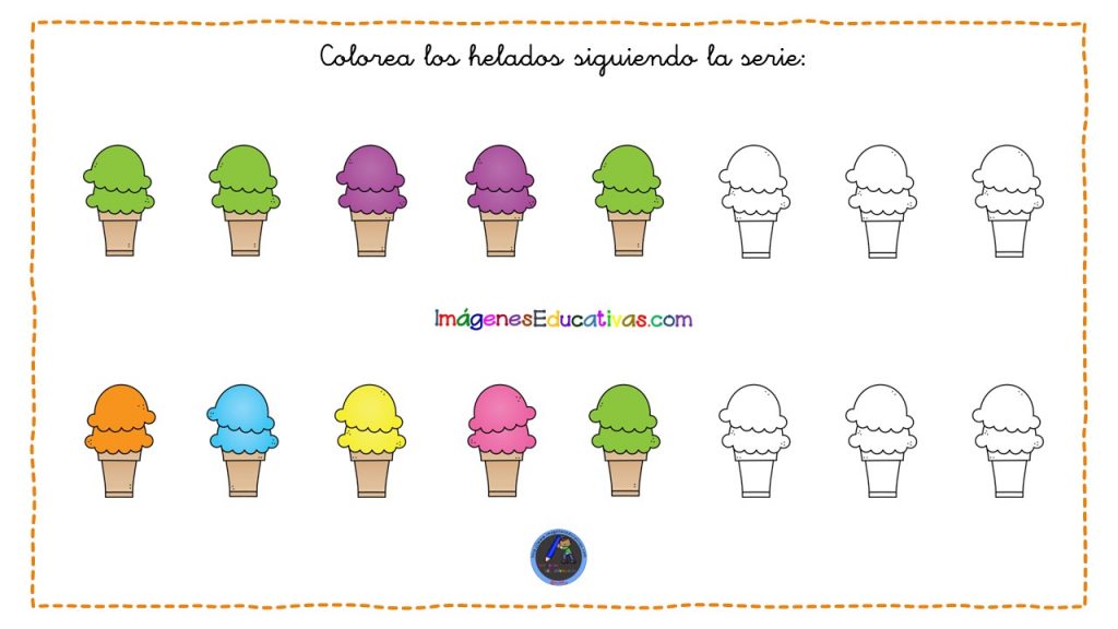 HELADOS DE COLORES: SIGUE LA SERIE María · 17 junio, 2022 · Deja un comentario Os presentamos unas nuevas fichas de razonamiento lógico y atención basadas en la discriminación de colores, nuestros alumnos deberán de señalar cual es el color que continua la serie de helados. Escribe tu correo electrónico… Suscribirse