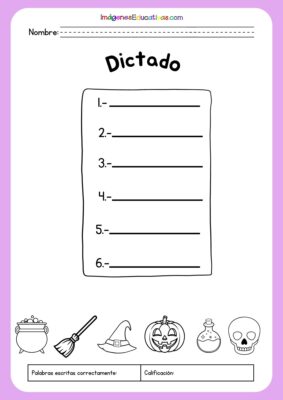 Usted está aquí: Inicio / Hojas de dictado de palabras con temática de Halloween / Dictado palabras Halloween (2)