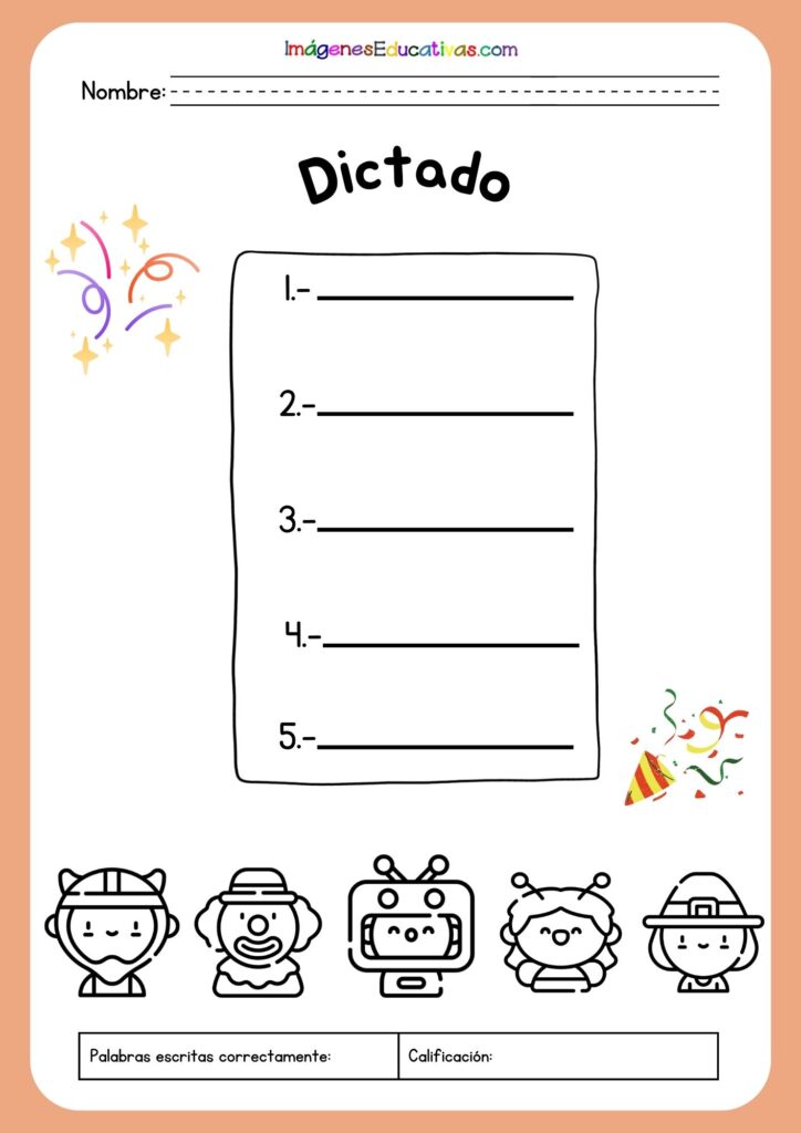 Aprender a escribir palabras no tiene por qué ser aburrido. Para los más pequeños, hemos diseñado unas hojas de dictado muy originales, que combinan lectura, escritura, creatividad y diversión con la temática del Carnaval.
