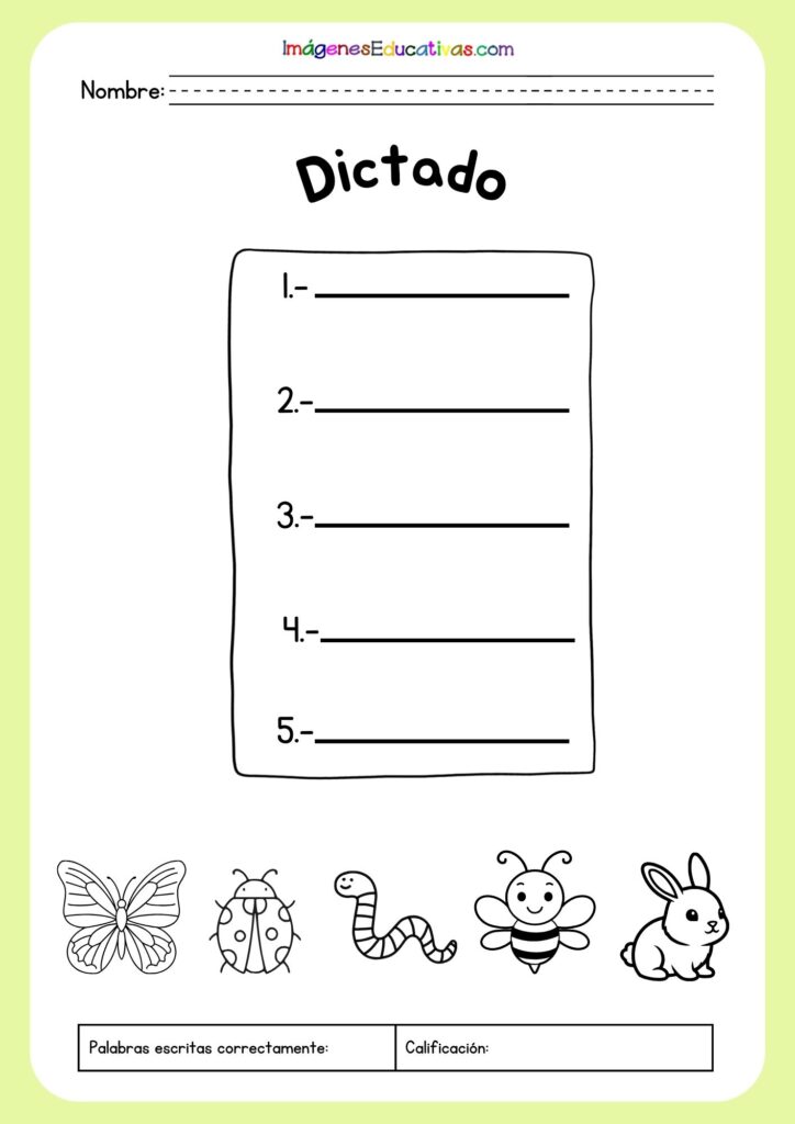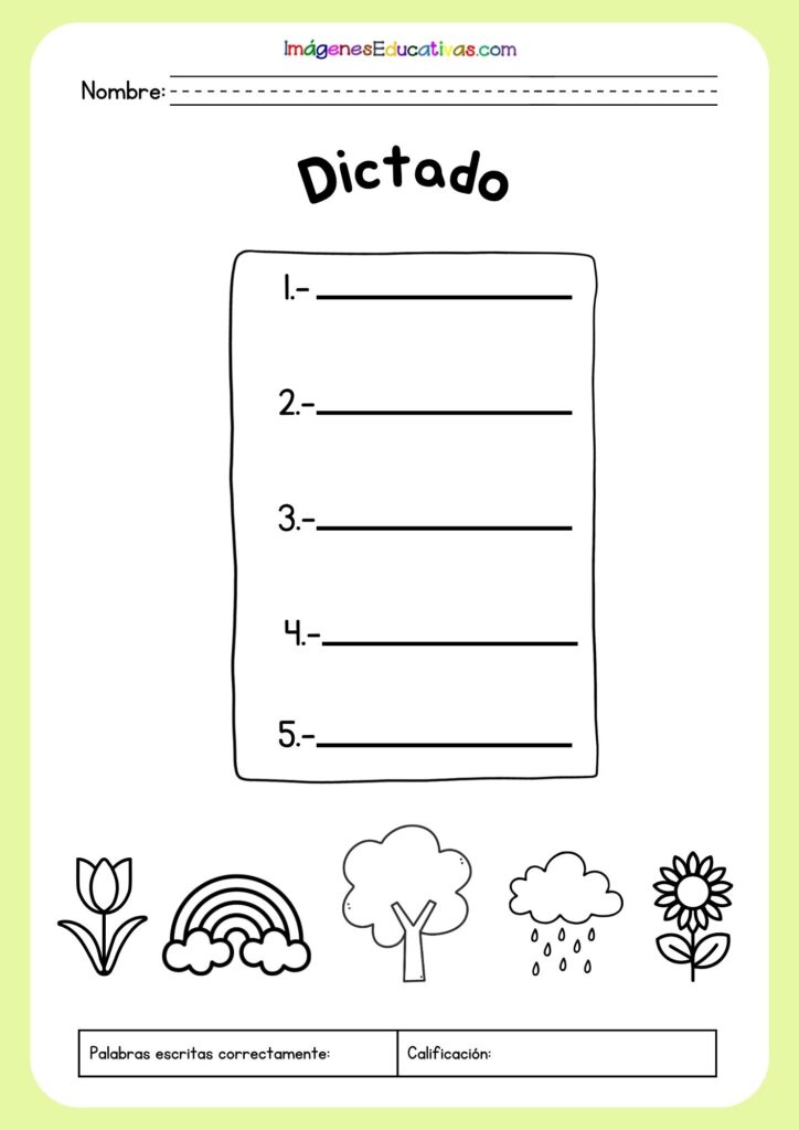 En esta entrada queremos compartir unas hojas de dictado pensadas para trabajar el vocabulario de la primavera de forma divertida y significativa. En cada ficha, los alumnos encontrarán diferentes dibujos relacionados con esta estación que deberán identificar y escribir correctamente, favoreciendo así la asociación entre imagen y palabra. Después, podrán colorear los dibujos, lo que convierte la actividad en una experiencia más atractiva y creativa. Estas propuestas no solo ayudan a mejorar la ortografía y la escritura, sino que también estimulan la atención, la observación y el aprendizaje lúdico en el aula o en casa.