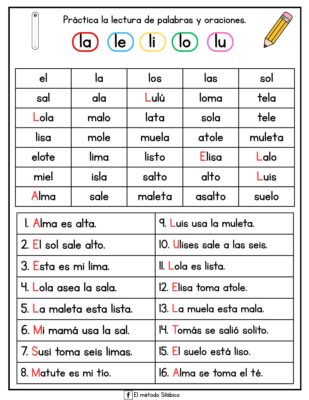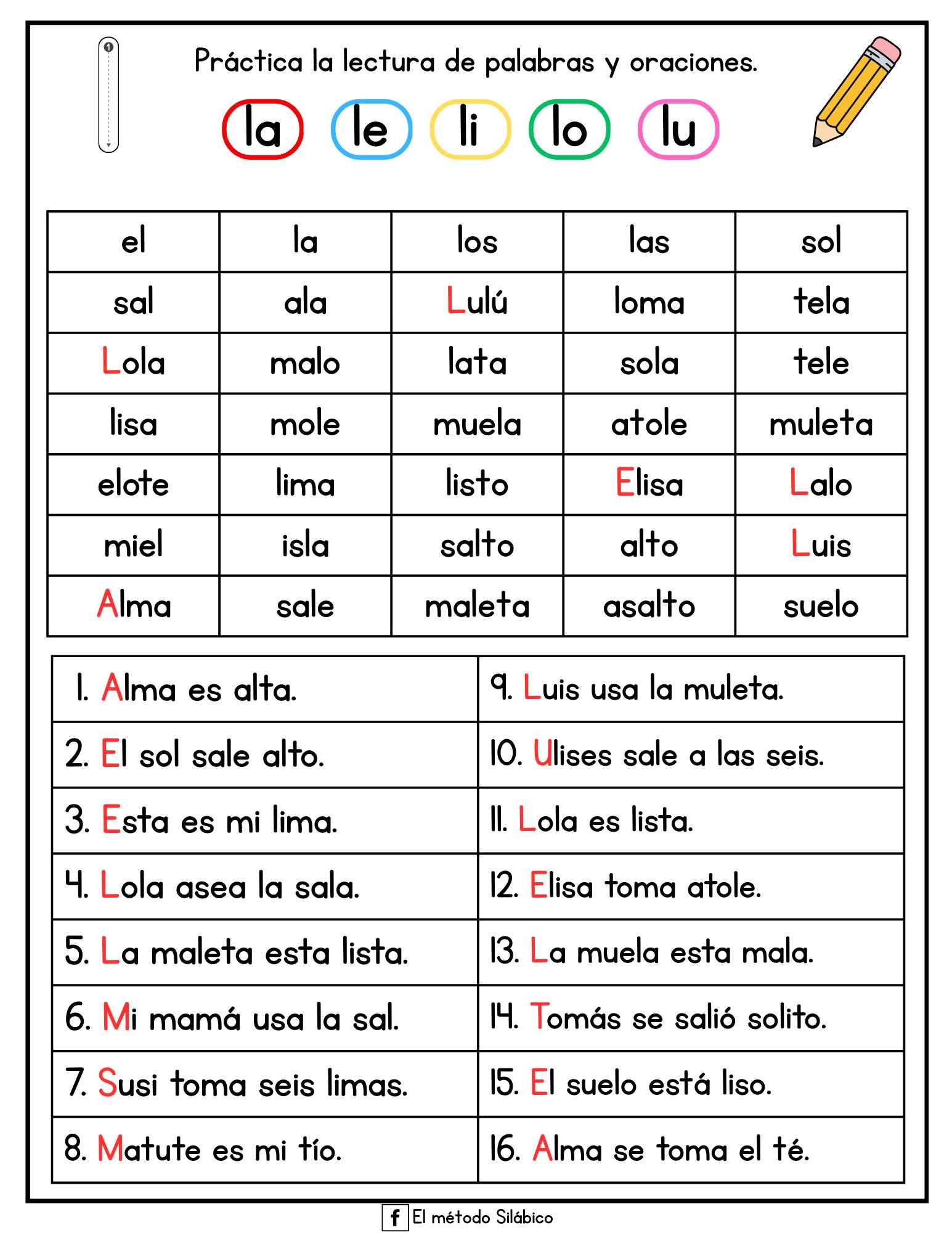 Hojas de lectura de palabras y oraciones Parte 1. M, S, T, L, R, P (4)