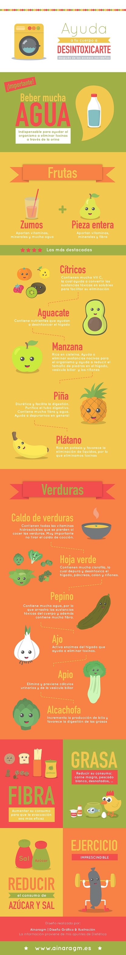 Aunque todos prometemos que en Navidad no nos vamos a pasar comiendo y bebiendo, llega enero y nos damos cuenta que no hemos hecho nada por evitarlo. Ahora no podemos lamentarlo porque ya ha ocurrido pero, ¿qué podemos hacer para que el cuerpo recupere la normalidad?. Se debe seguir una dieta equilibrada como el resto del año, pero a continuación muestro una infografía sobre qué alimentos nos pueden ayudar a eliminar toxinas.