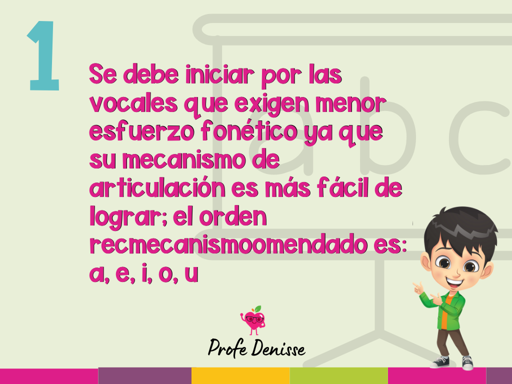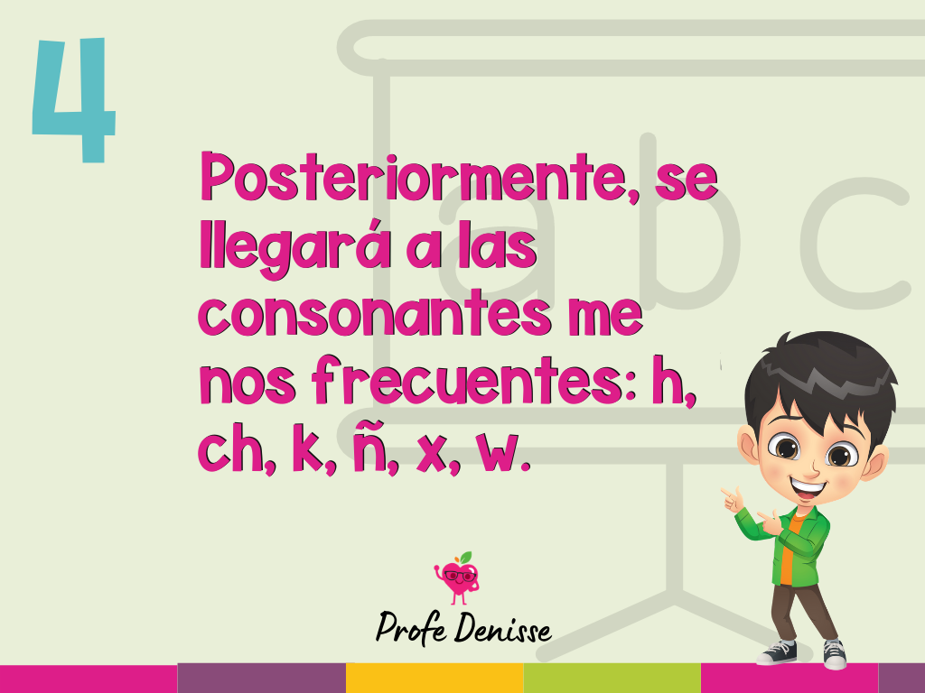 Antes de empezar, hay que mencionar que al enseñar las consonantes no es buena idea seguir el orden que tienen en el abecedario, sino empezar con aquellas consonantes que suelen ocupar los pequeños en palabras comunes.