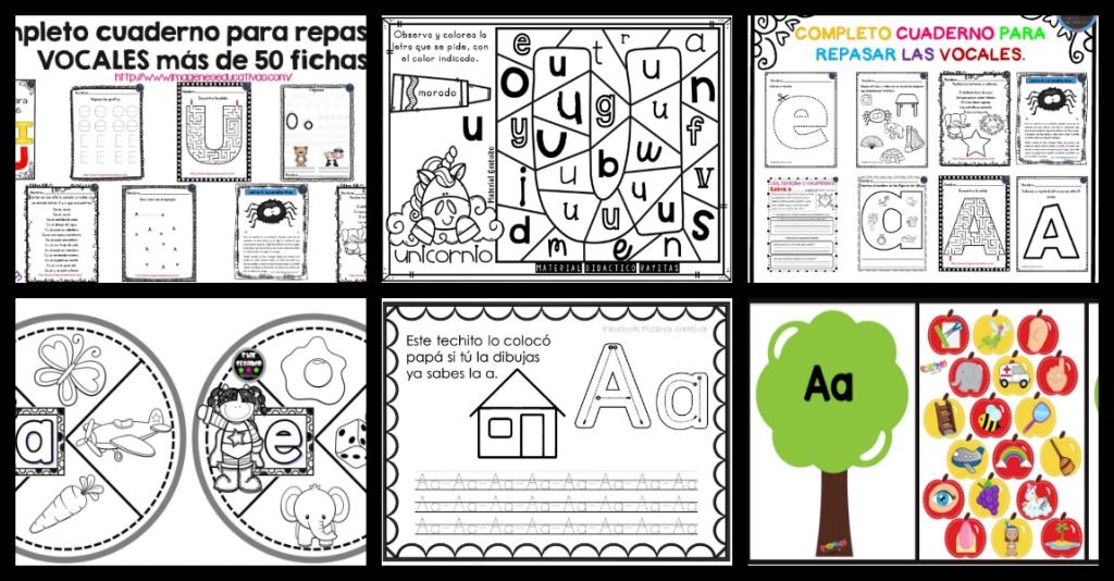 300 fichas educativas dedicadas al aprendizaje de las vocales.