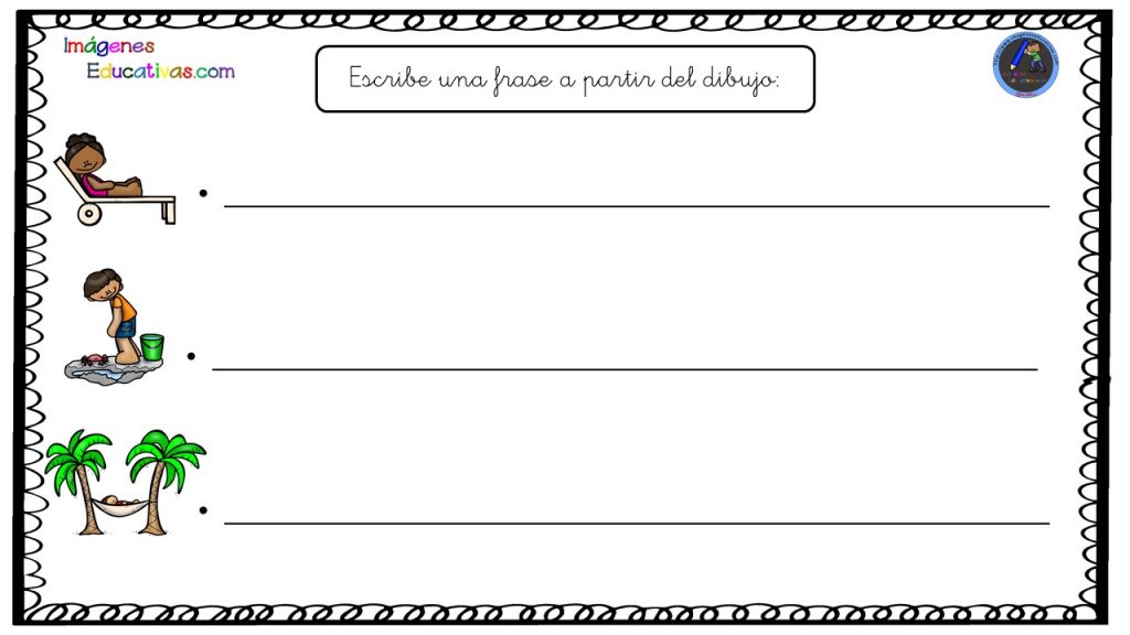 En las siguientes fichas hay que escribir una frase a partir del dibujo que aparece a la izquierda. Es primordial impulsar el aprendizaje de la lectoescritura desde una edad temprana. Por ese motivo, os hemos preparado las siguientes fichas para trabajar la lectoescritura con vocabulario especial de verano.