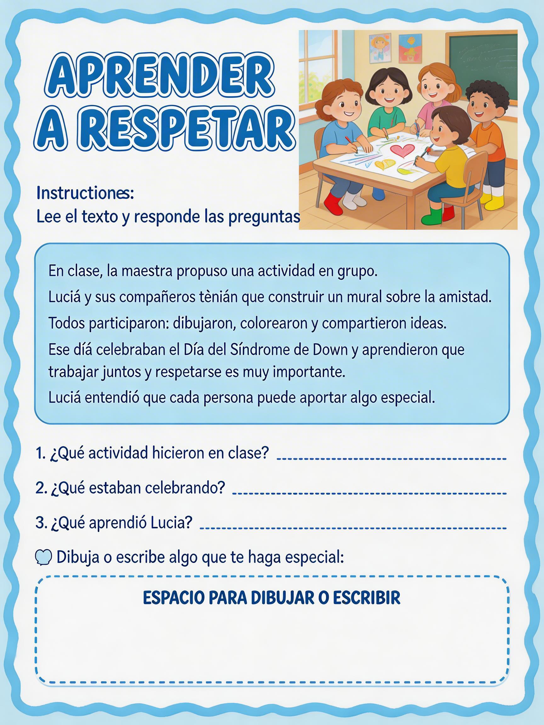 Lecturas cortas de Comprensión 21 de marzo Día Mundial del Síndrome de Down (3)