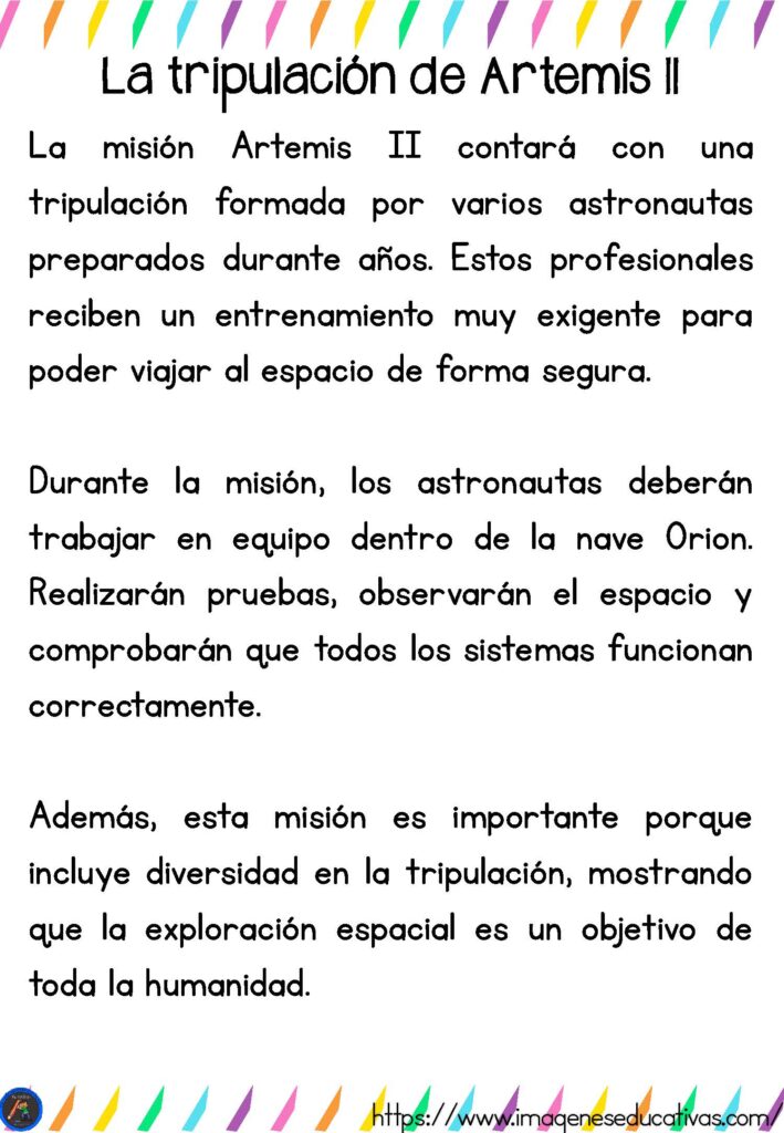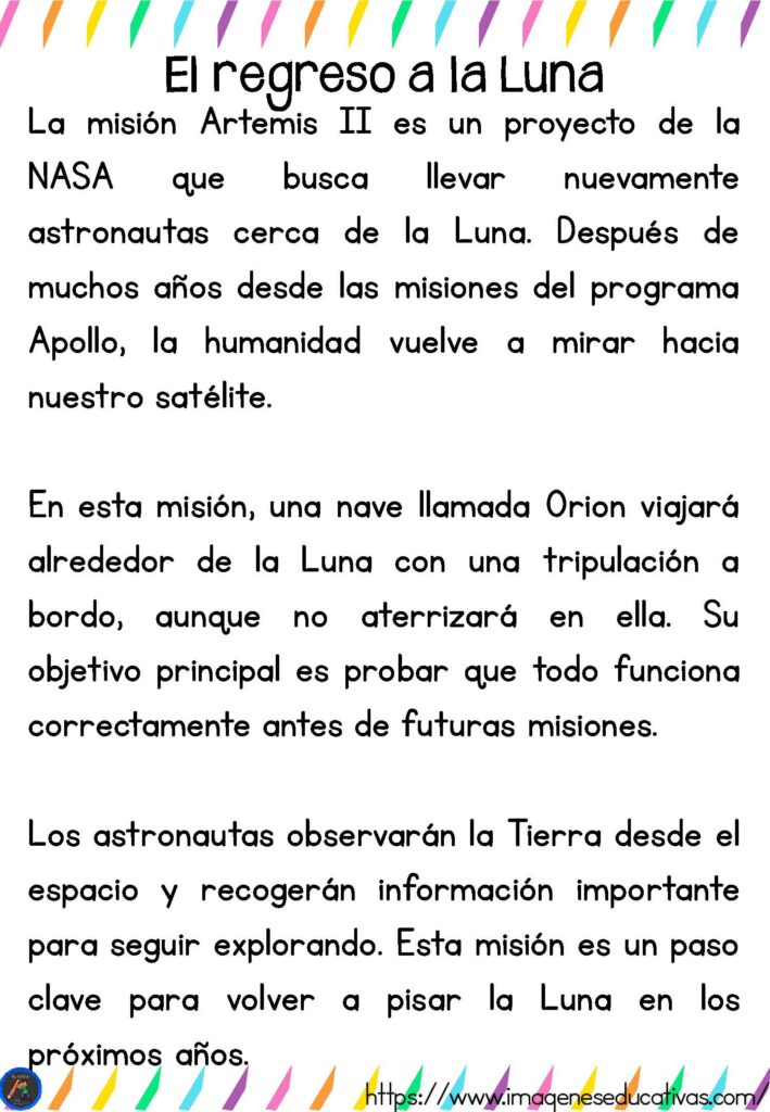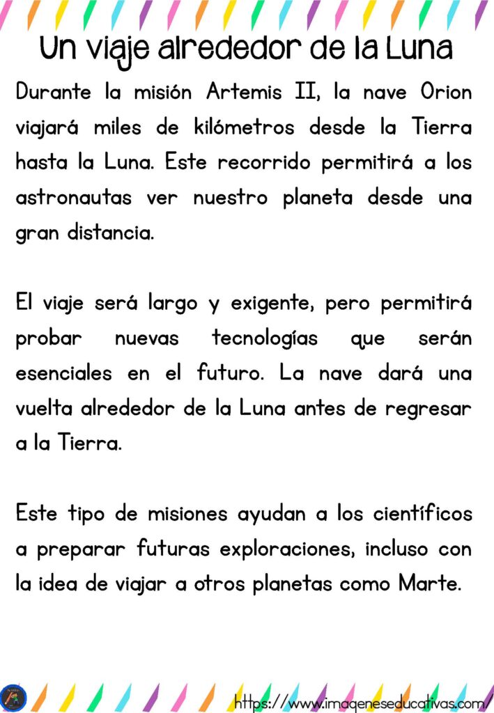 - Lecturitas sencillas para trabajar la comprensión Misión Artemis II