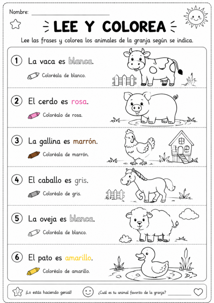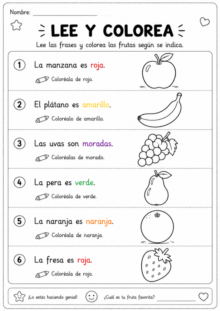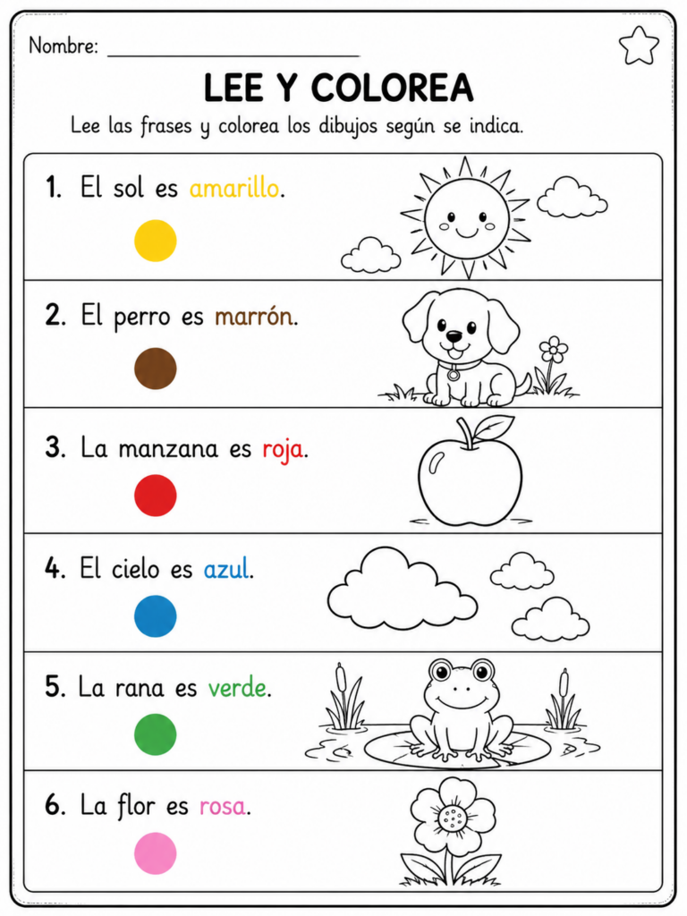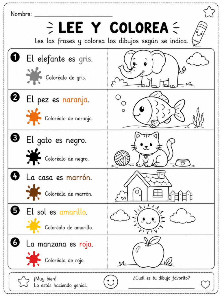 Lee y Colorea Fichas para Imprimir
