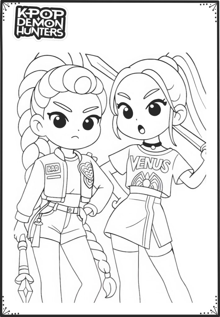 Ilustraciones originales de Guerreras K-pop listas para colorear.