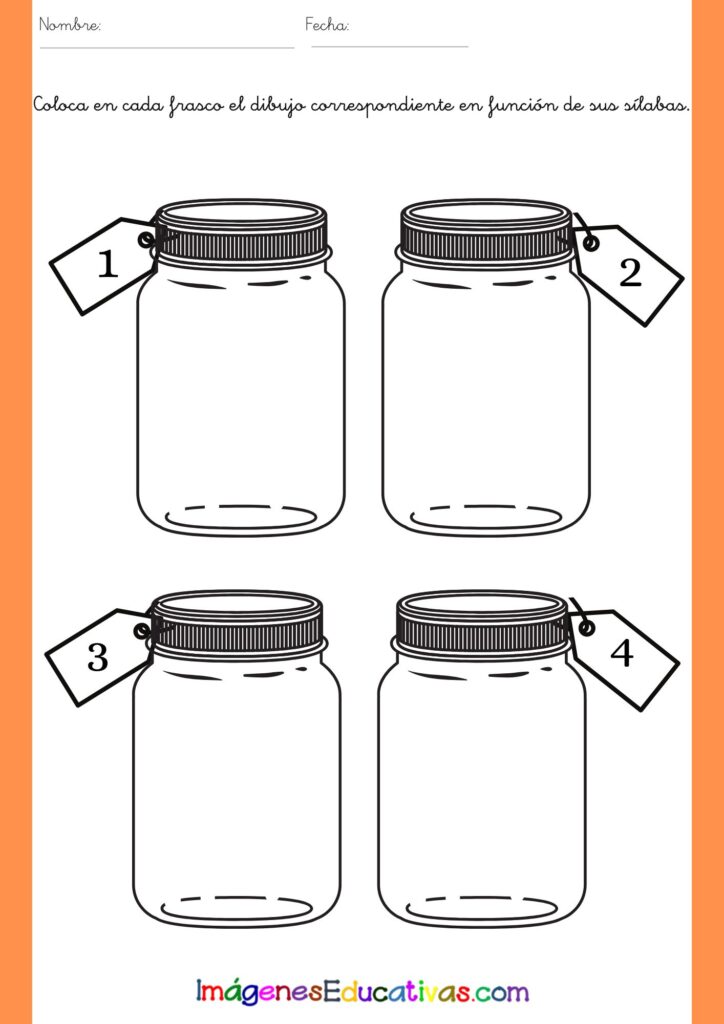 Hoy te compartimos una actividad manipulativa perfecta para trabajar la segmentación silábica, el primer paso hacia una lectura fluida y una escritura segura. Se trata de un recurso en el que los niños deben clasificar imágenes según el número de sílabas que tiene la palabra que representan, colocándolas en el frasco correspondiente (uno, dos, tres o cuatro sílabas).