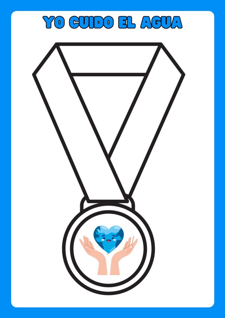 Una vez coloreadas, las medallas pueden recortarse y colocarse con un lazo o un clip para que cada niño la luzca con orgullo, reconociendo su compromiso con el cuidado del agua. También pueden pegarse en el aula para formar un mural con el mensaje colectivo de respeto hacia este recurso natural.