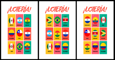 - Lotería de imágenes con las banderas de los países de Sudamérica