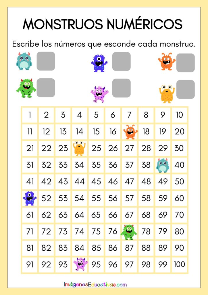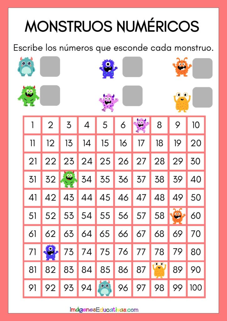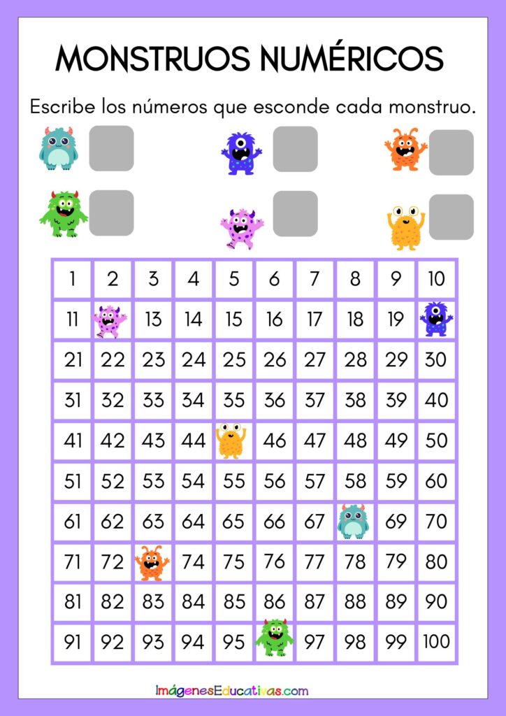 La tabla del 100 es un recurso fundamental para trabajar la numeración, el conteo, la descomposición de números y las relaciones numéricas en Educación Primaria. Para hacer este aprendizaje más atractivo, hoy compartimos unas fichas matemáticas muy especiales: en ellas, ¡algunos números han sido sustituidos por divertidos monstruos!