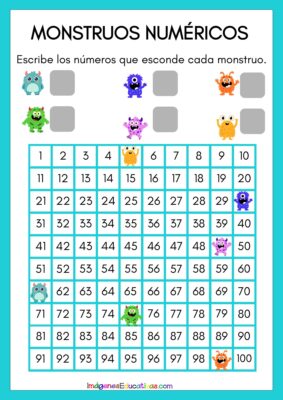 Usted está aquí: Inicio / Monstruos numéricos en la tabla del 100 / Monstruos numericos tabla 100 (4)