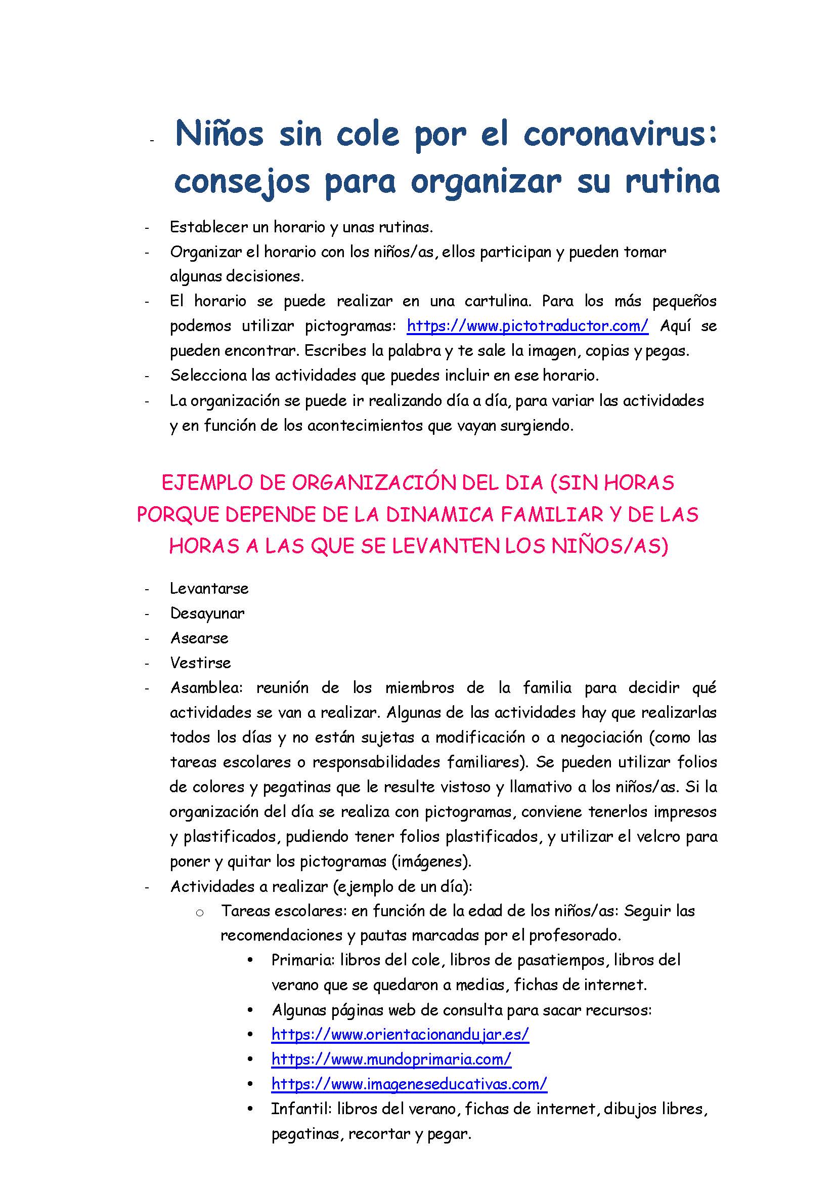 Niños sin cole por el coronavirus: consejos para organizar su rutina