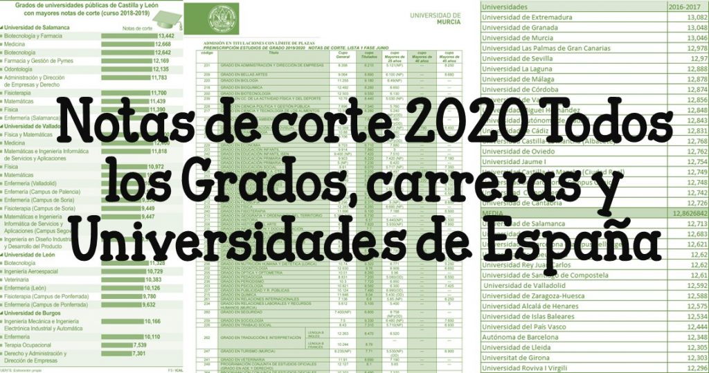 Notas de corte 2020 Todos los Grados, carreras y Universidades de España