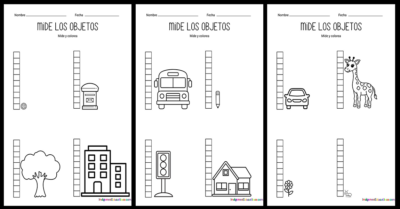 - Fichas matemáticas de Infantil para medir objetos: Mide y colorea