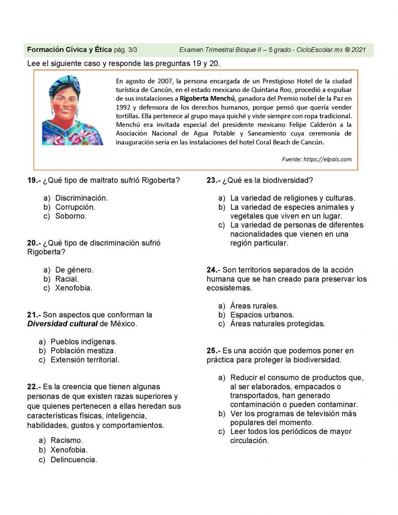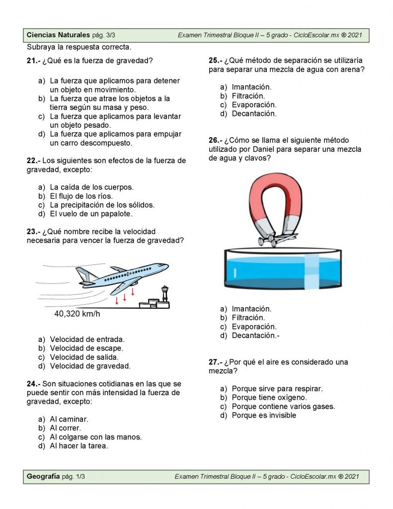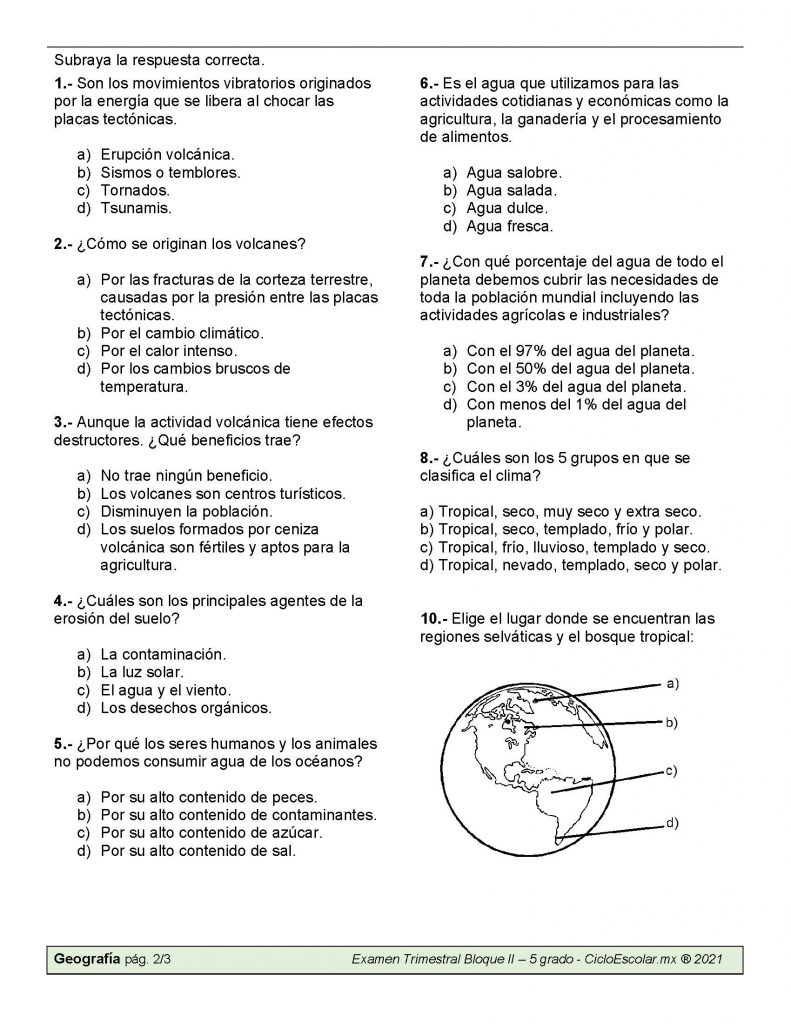 PREGUNTAS Y RESPUETAS PARA EL EXAMEN TRIMESTRAL BLOQUE II GRADO 5º Y 6º 2021