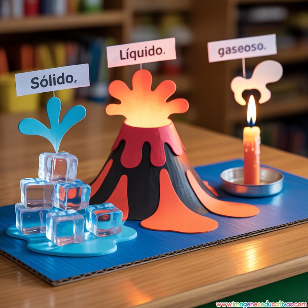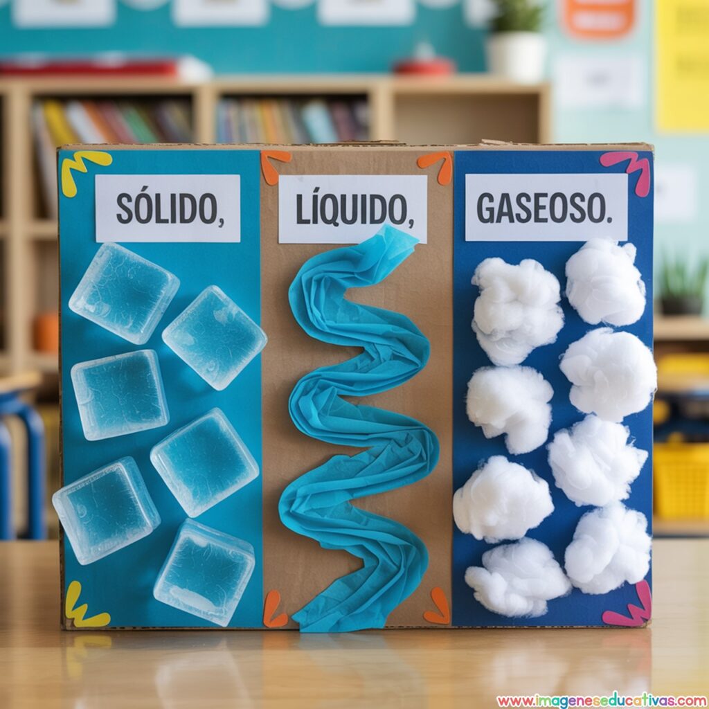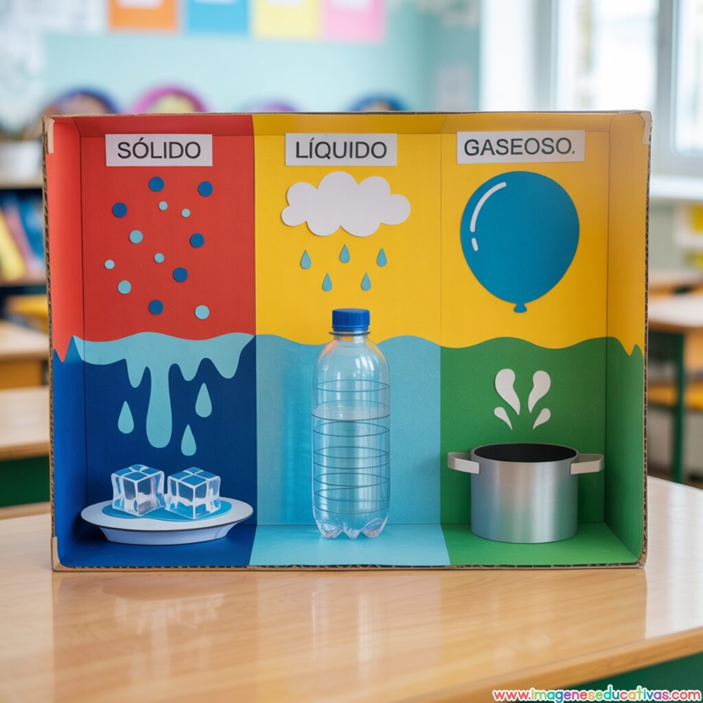 Los Proyectos Escolares: Dioramas de los Estados de la Materia de Imágenes Educativas son una propuesta creativa y práctica para ayudar al alumnado a comprender de forma visual y manipulativa cómo cambian y se comportan los sólidos, líquidos y gases. A través de pequeños escenarios en 3D, los niños y niñas pueden representar cada estado de la materia de manera clara, atractiva y divertida.