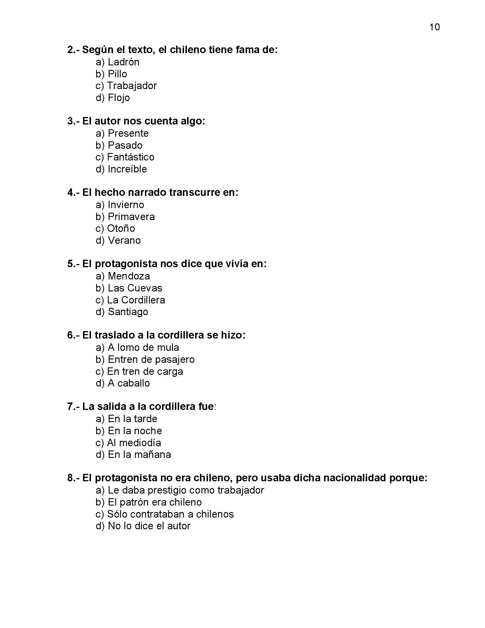buenas tardes por favor subir las preguntas 1, 9 ,10 de esta prueba diagnostica lectora.El texto se llama Chileno