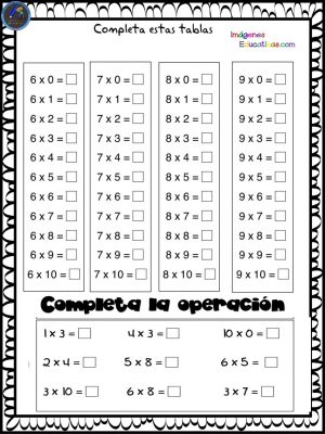 Repasamos las tablas de multiplicar ejercicios listos para imprimir