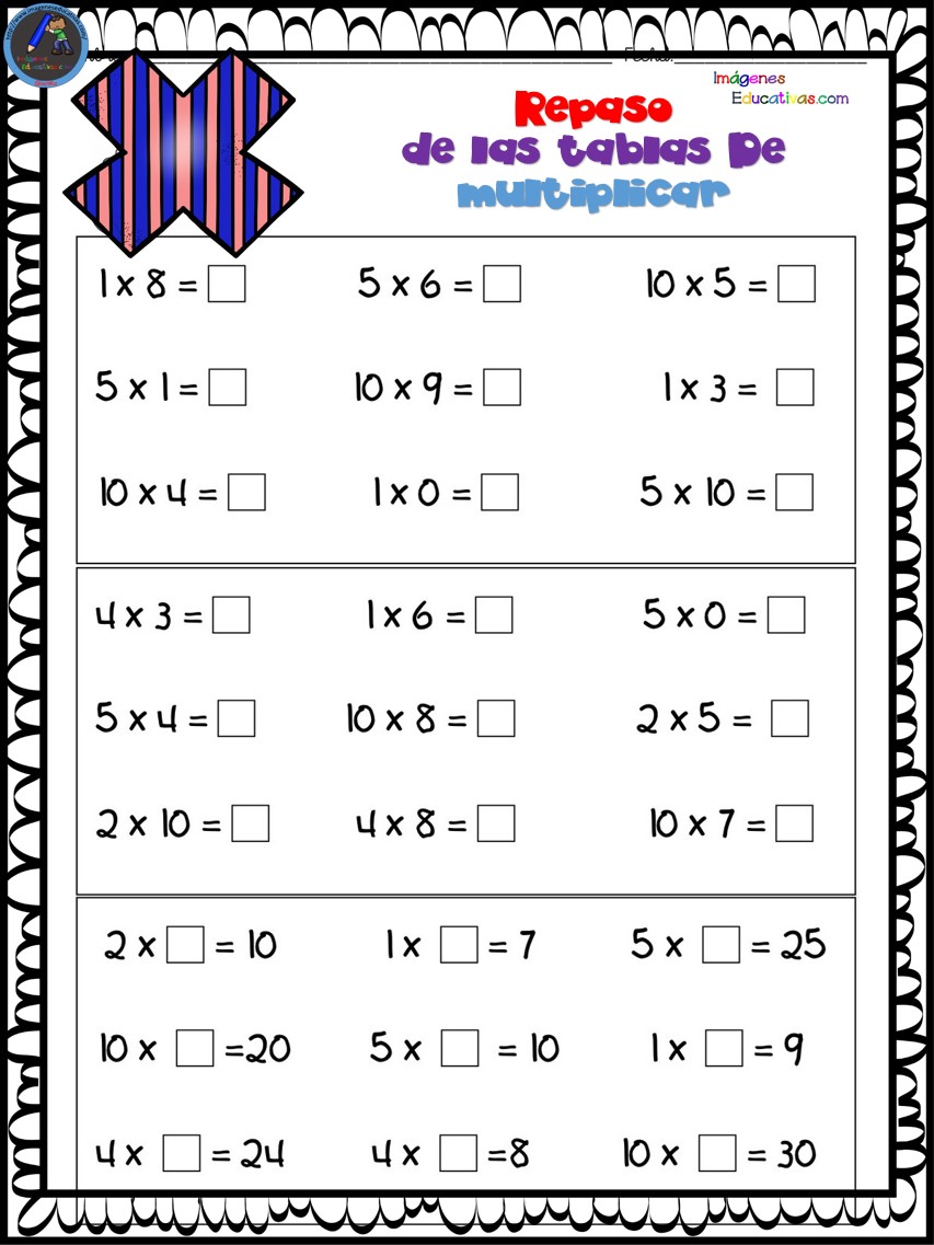 Repasamos las tablas de multiplicar ejercicios listos para imprimir (9) ACRBIO · 3 marzo, 2018 · Deja un comentario