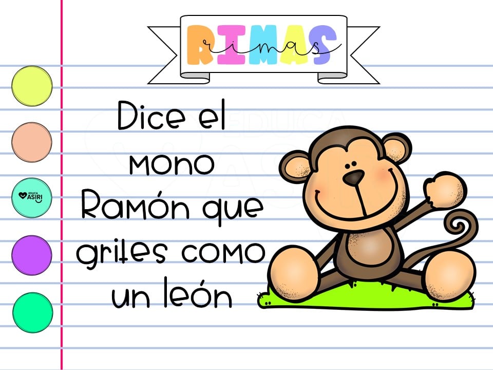 Los juegos con rimas dirigen la atención de los niños y las niñas a las semejanzas y diferencias de los sonidos de las palabras, también es útil para que se den cuenta que la esencia del lenguaje no es sólo significación y mensaje, que es importante lo que se dice, pero también el cómo se dice.
