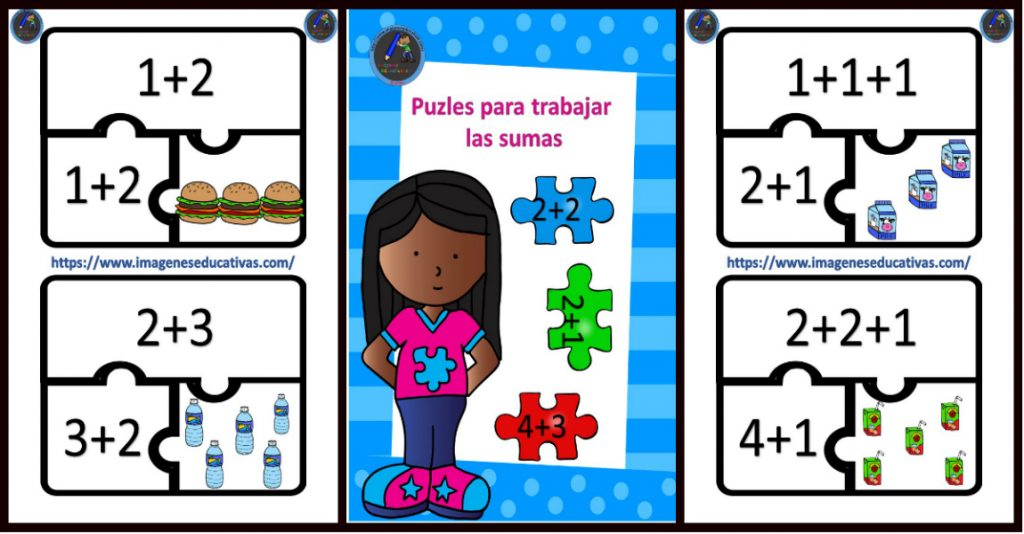 Colección de puzzles para trabajar la iniciación a la suma del blog Actividades de Infantil y Primaria.